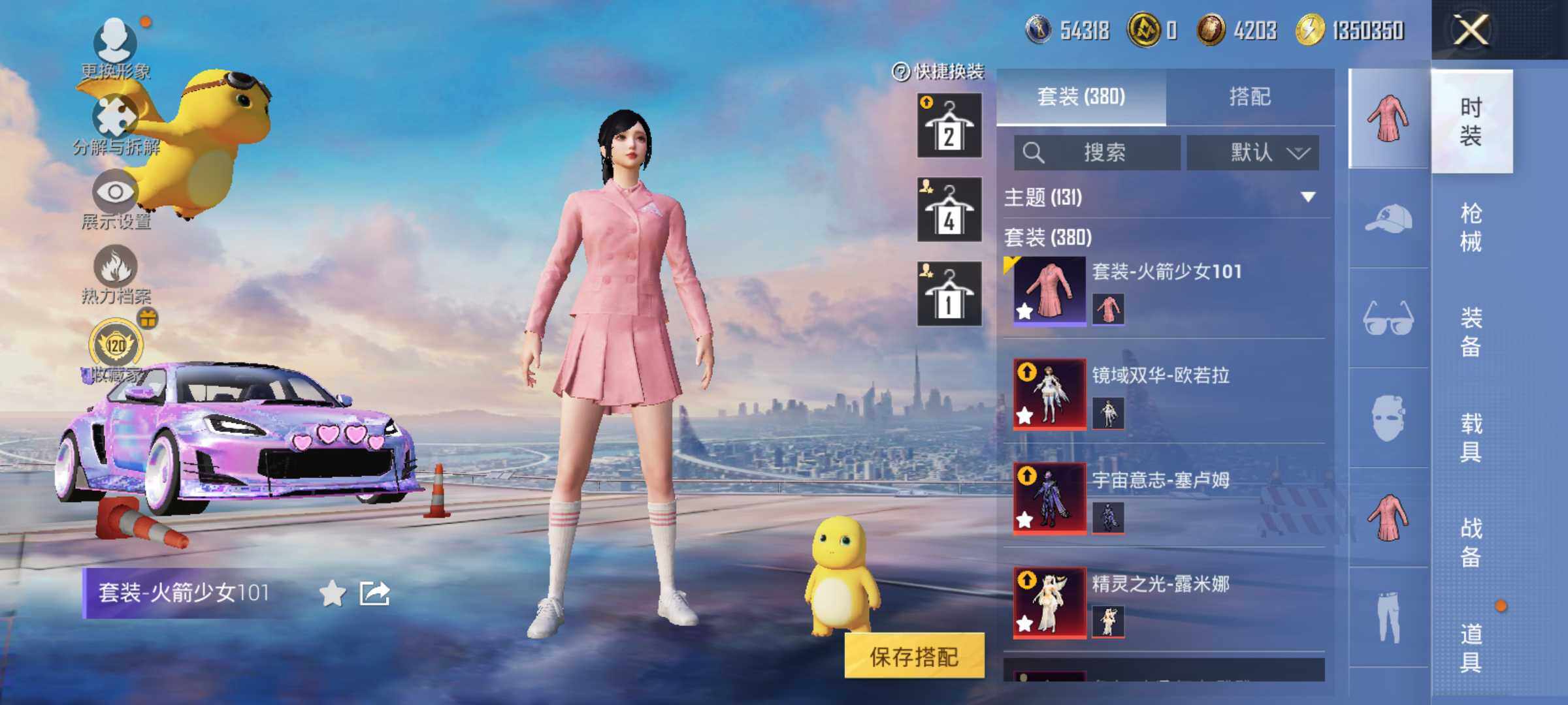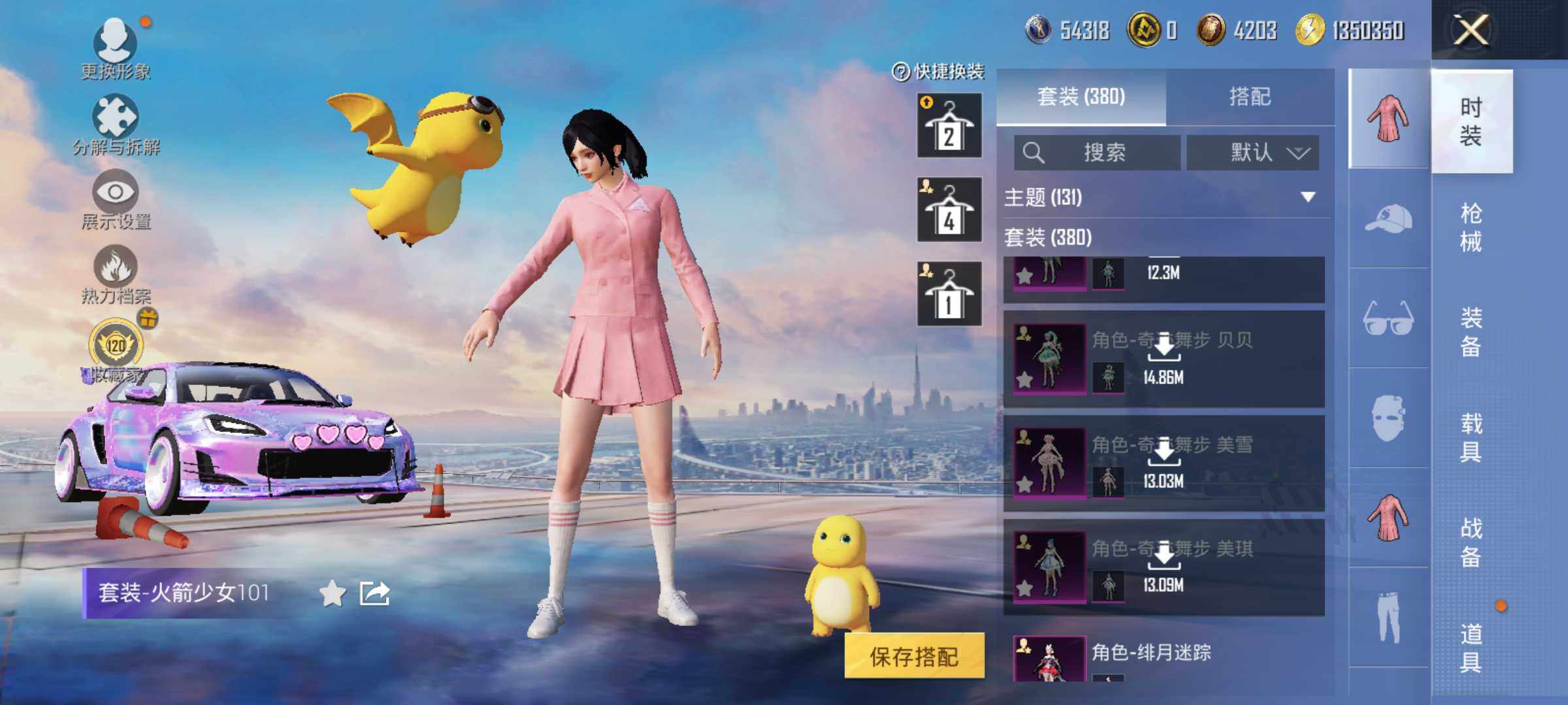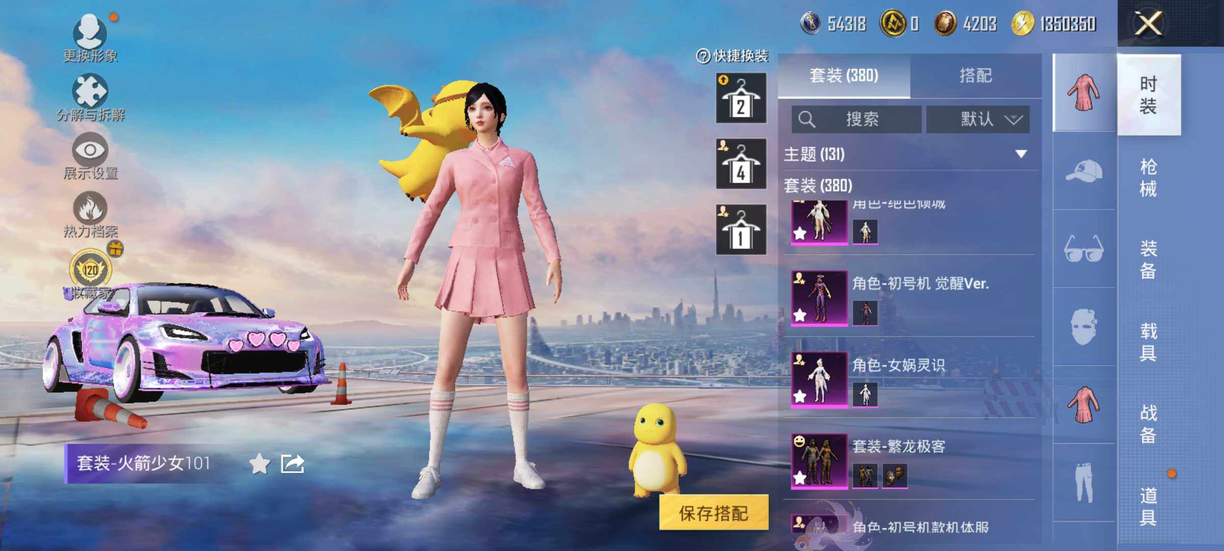 【粉色套装】:粉装-天使彩虹糖,粉装-蝶舞迷情,粉装-梦幻火箭,粉装-缤纷油彩,粉装-放客神游,粉装-彗云及圣,粉装-新星烈龙,粉装-炙焰赤龙,粉装-飓风飞鹰,角色-洛天依,角色-初号机款机体服,粉装-暗夜鎏金,角色-白勺歌姬,角色-呆萌星弥,角色-小可学妹,角色-水仙星,粉装-巨渊蟹踪,粉装-天幕蝎影,粉装-双星鱼跃,粉装-勇猛狮王,粉装-射星猎手,粉装-无畏白羊,粉装-银瓶流水,粉装-双面双生,粉装-天衡星秤,粉装-神隐金牛,粉装-室女星神,粉装-牧神之羯,角色-万古烈焰,粉装-莲影清波,粉装-彩装战姬,粉装-暖暖奶龙,粉装-憨憨奶龙,粉装-傲傲奶龙,角色-熔岩统帅,角色-冰炎战车,角色-紫钛骑兵,角色-小叽联名款,粉装-甜心首席,粉装-繁龙极客,粉装-蜜语绒猫,角色-绝色倾城,粉装-辉耀战甲,粉装-鎏金朋克,角色-烟云彩露,角色-严莉莉,角色-小蓝,角色-美雪,角色-美琪,角色