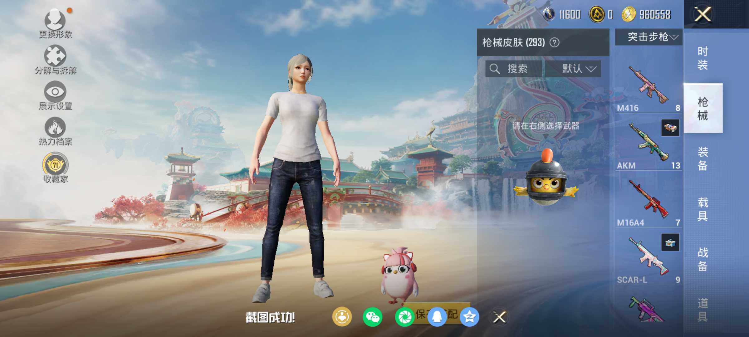 AKM-绿萝繁花,SCAR-L-锦绣绵绵,M416-心之恋语,UMP45-量子极限,Kar98K-巳巳如意