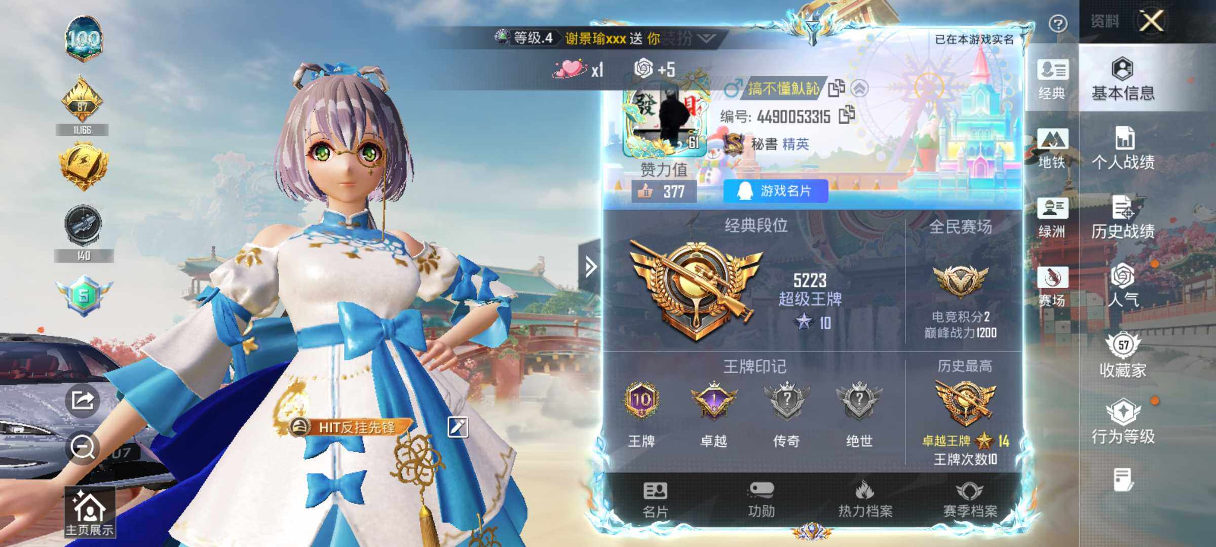 - [11864011]总资产:52.2M 7传说枪械 哈夫币:459.881K 可二次 可修改实名 烽火地带段位:无段位 全面战场段位:无段位 传说武器皮肤:UZI冲锋枪-特斯拉线圈,AK-12突击步枪-特斯拉线圈,SR-3M紧凑突击步枪-特斯拉线圈,勇士冲锋枪-能天使-午夜邮差,Vector冲锋枪-能天使-午夜邮差,M4A1突击步枪-阿米娅,CAR-15突击步枪-阿米娅