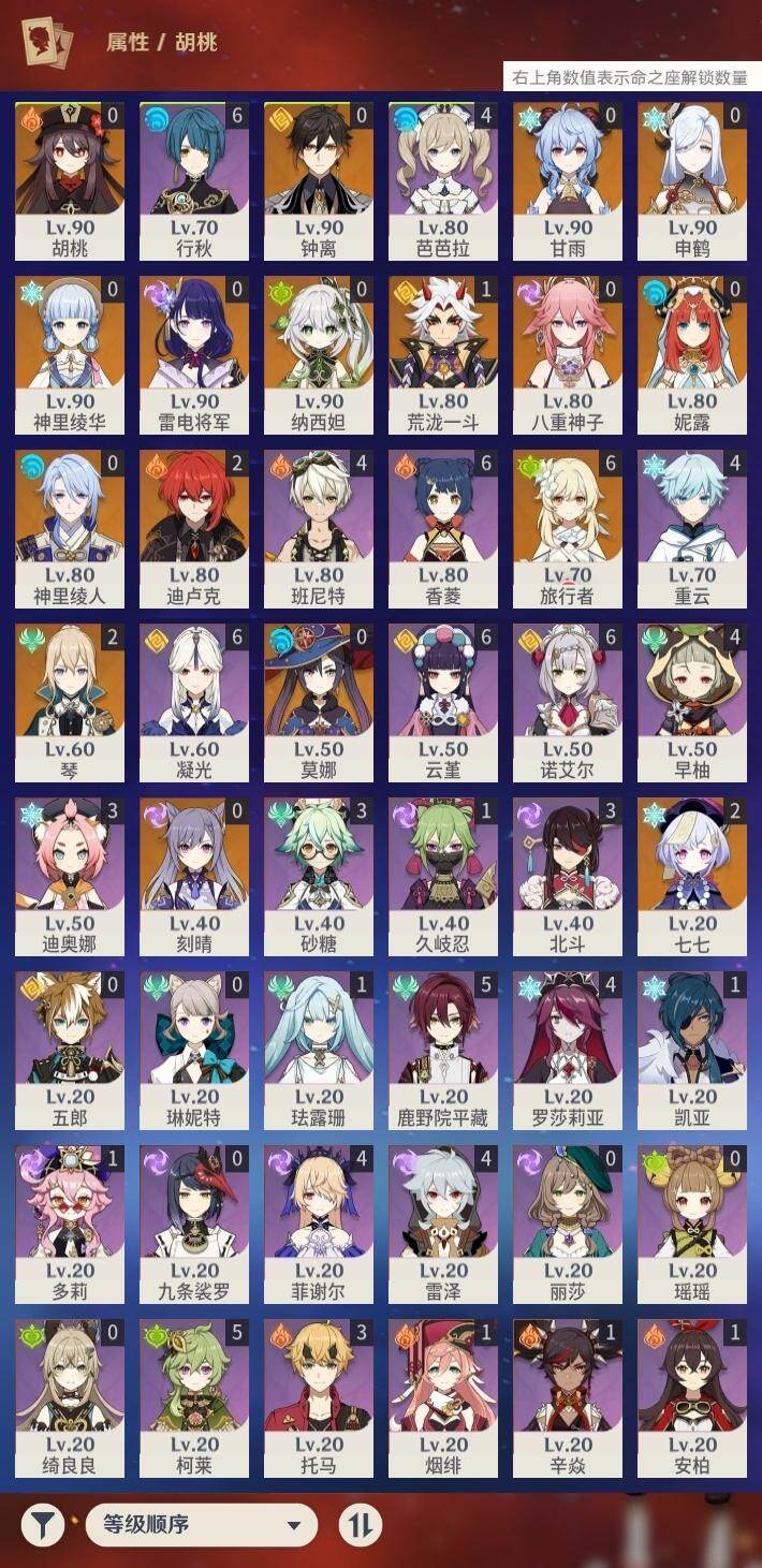 [17490765]57级/29黄/女主/16个五星角色/6个五星武器
