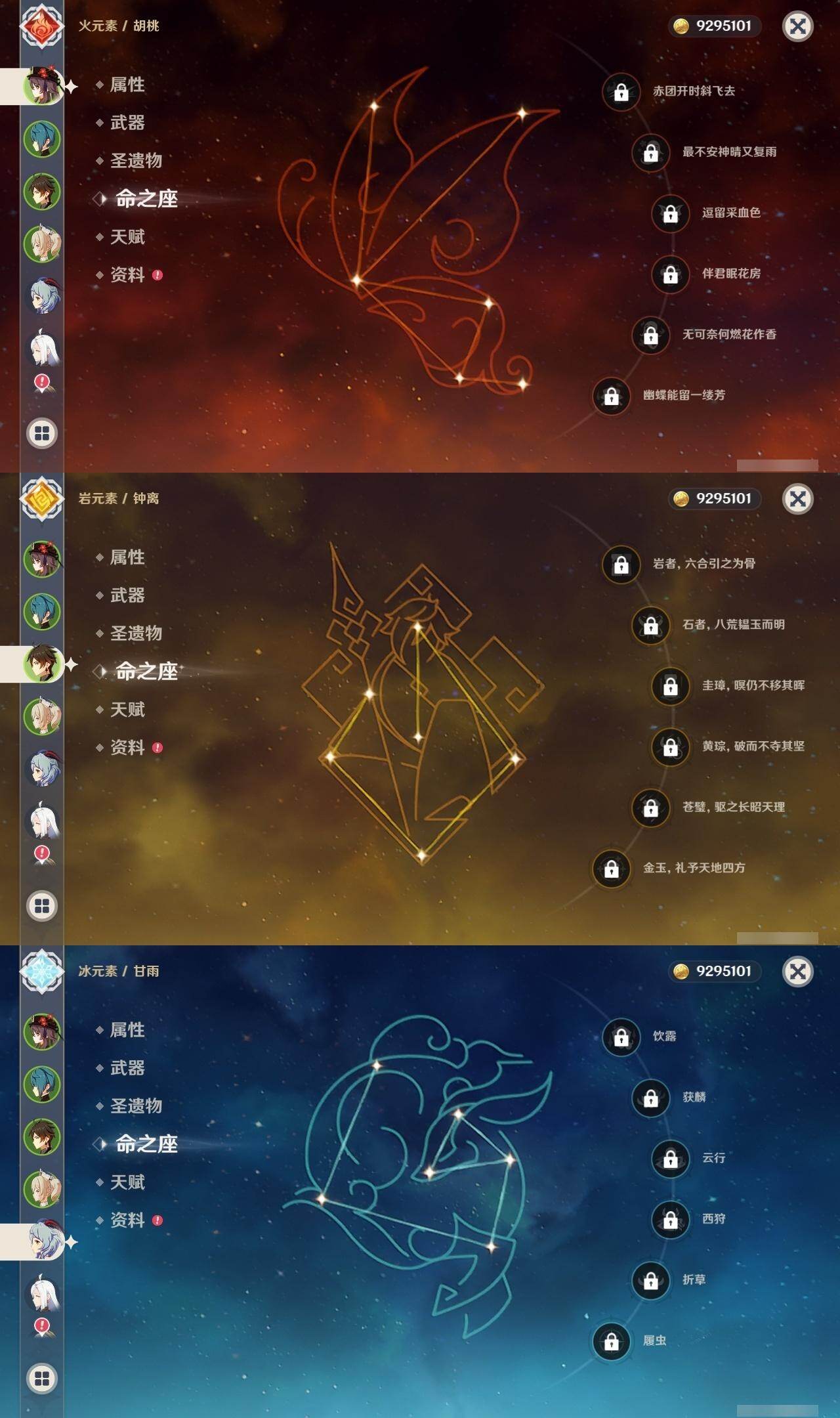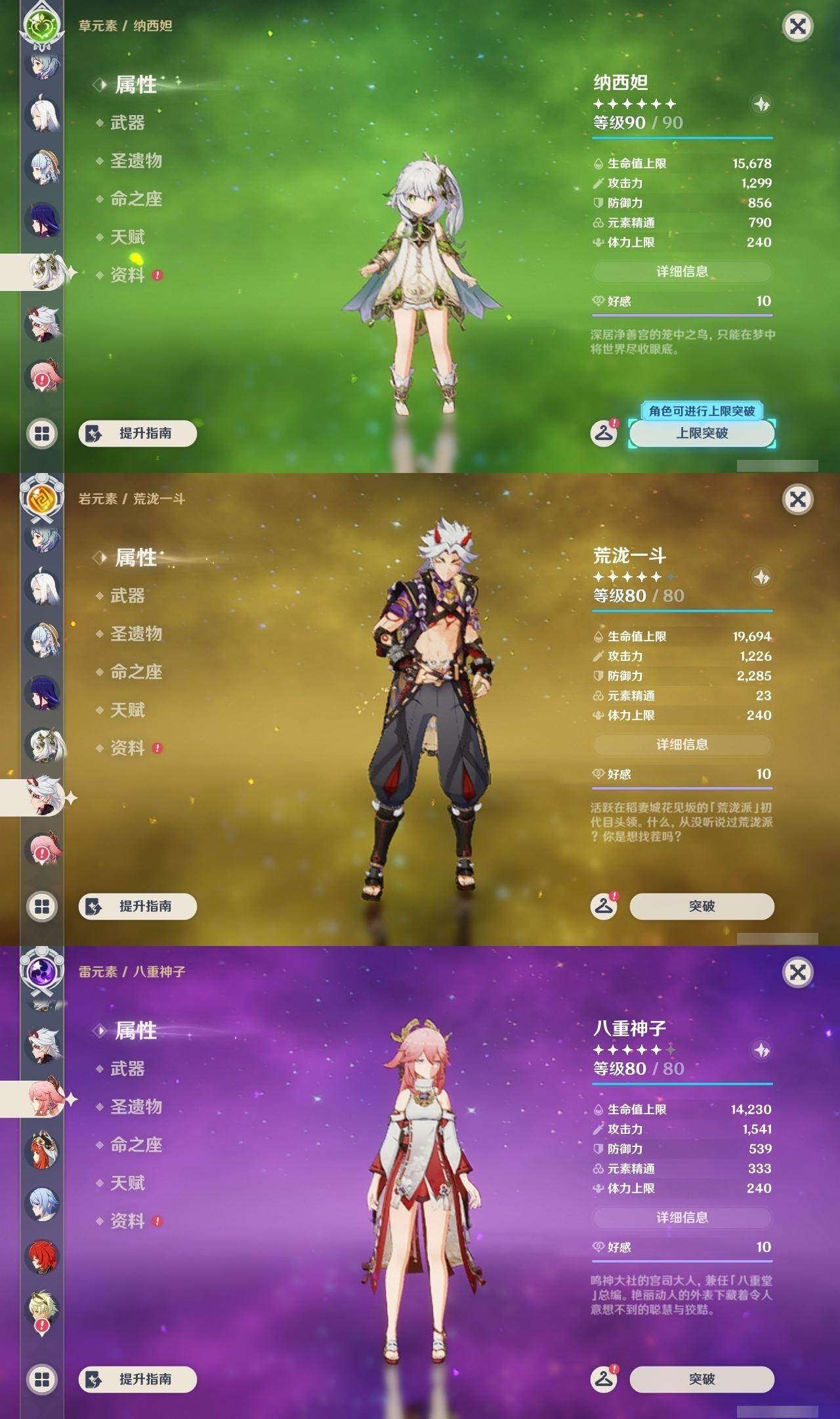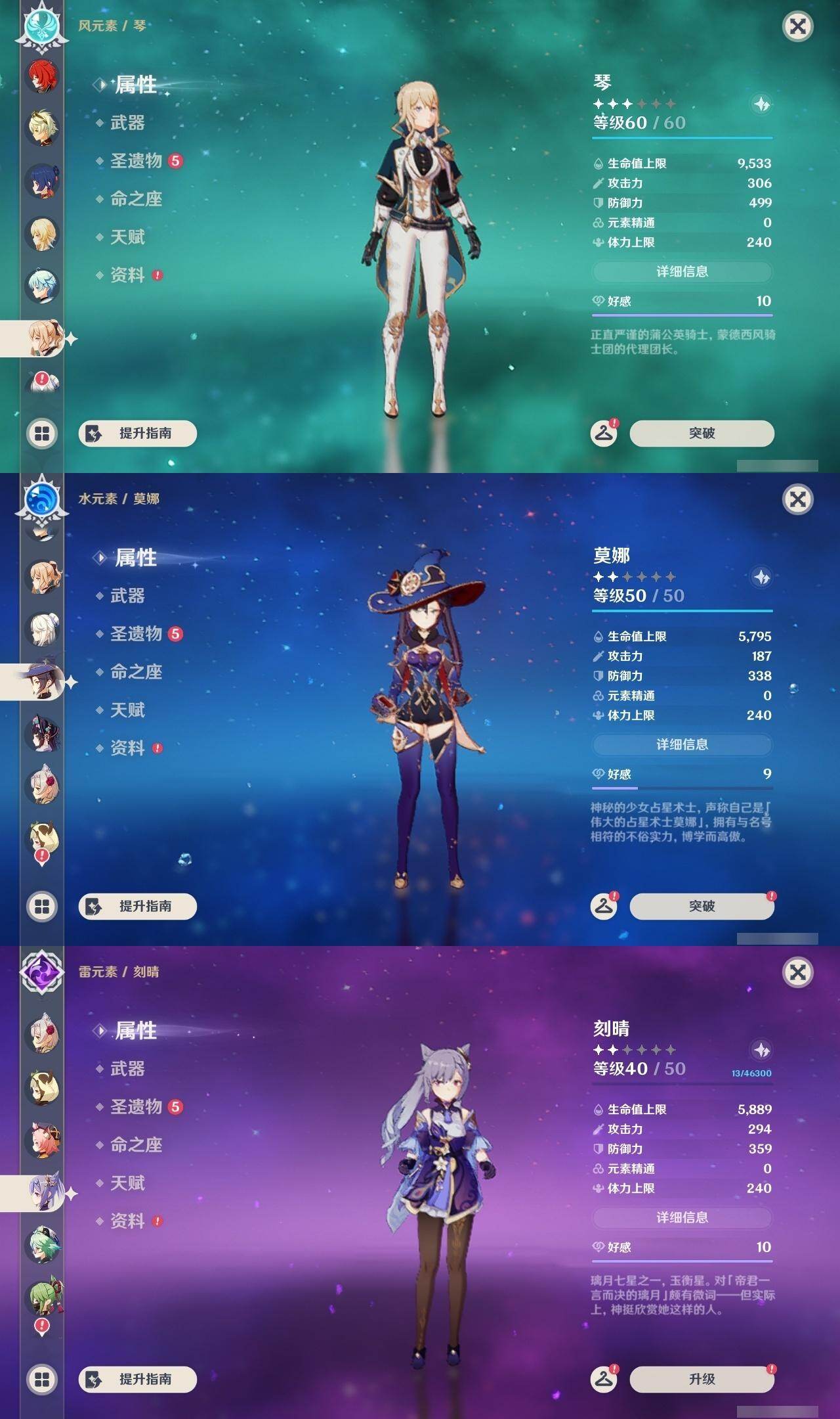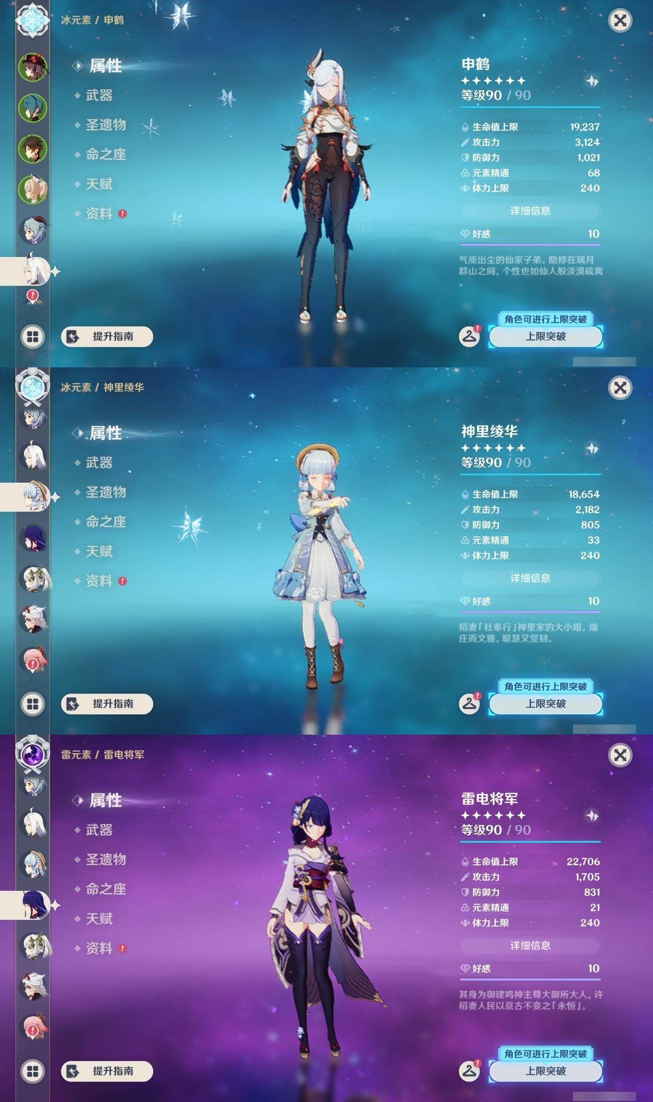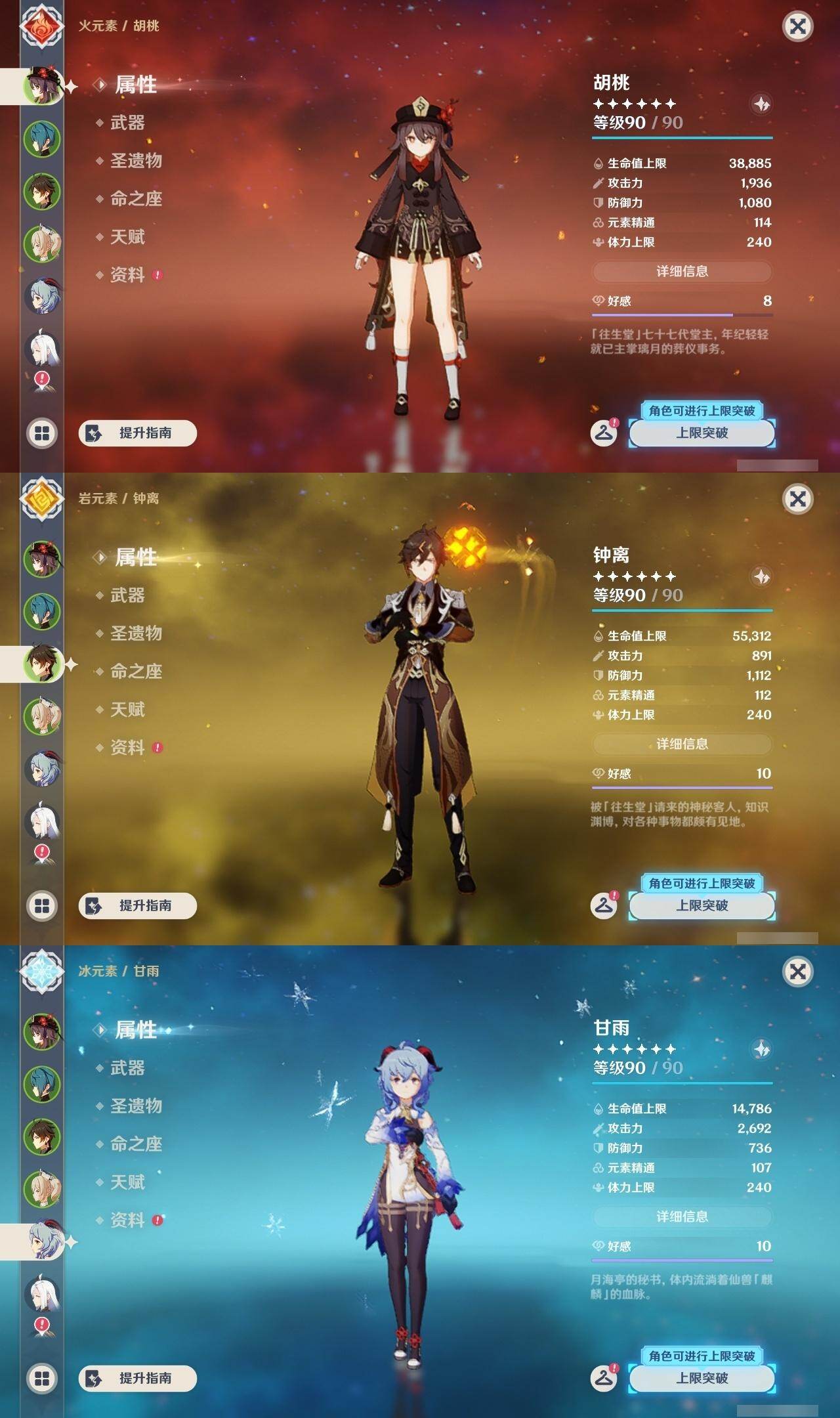 胡桃,钟离,甘雨,申鹤,神里凌华,雷电将军,荒泷一斗,八重神子,迪卢克,琴,莫娜,刻晴,七七