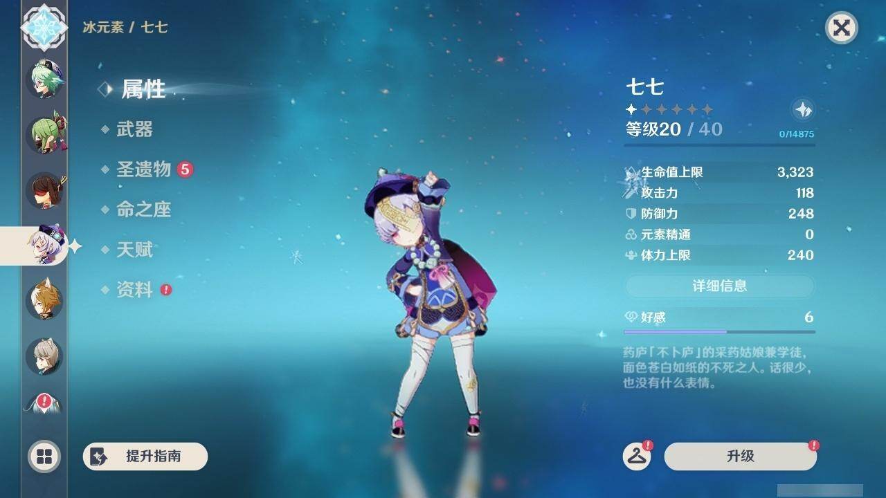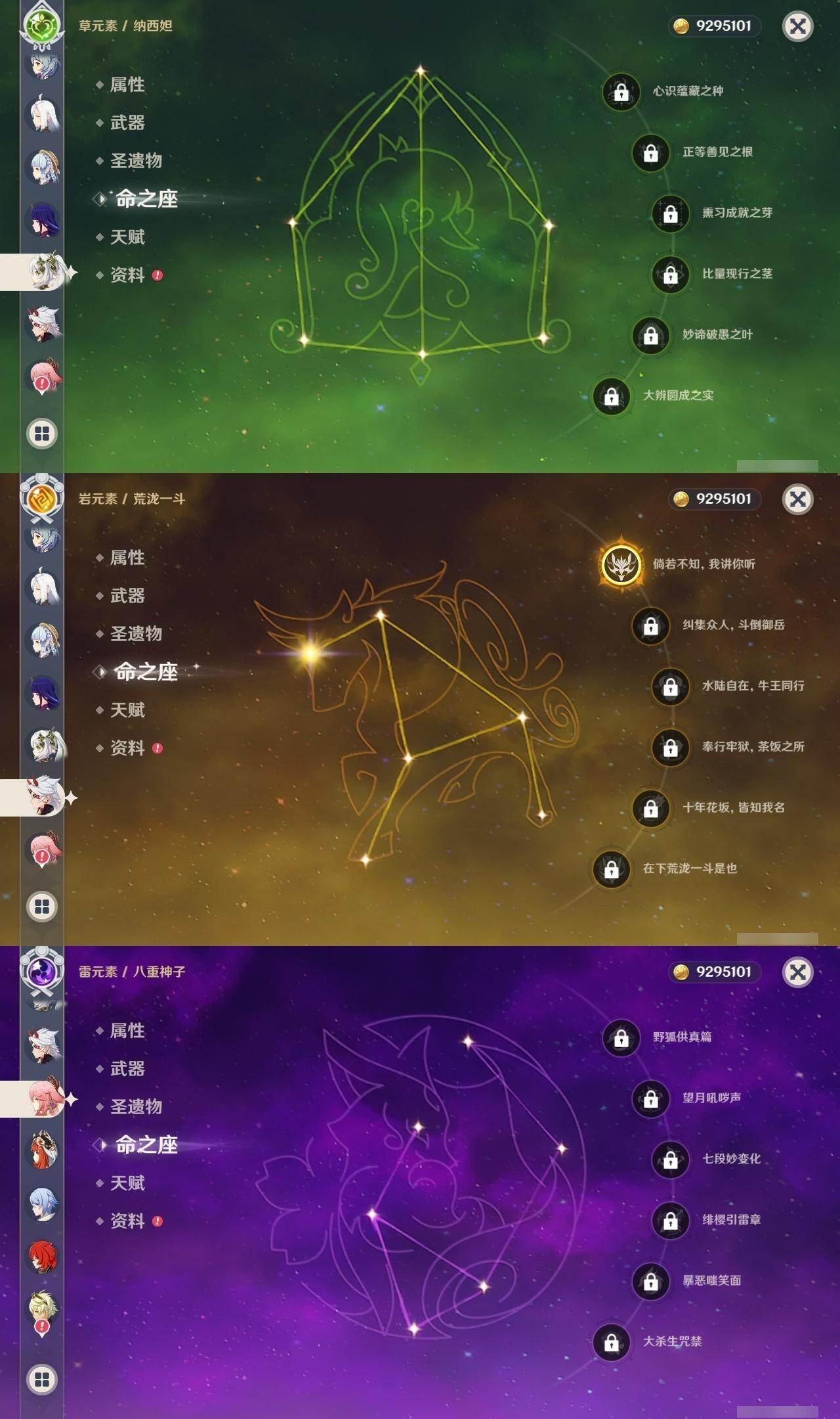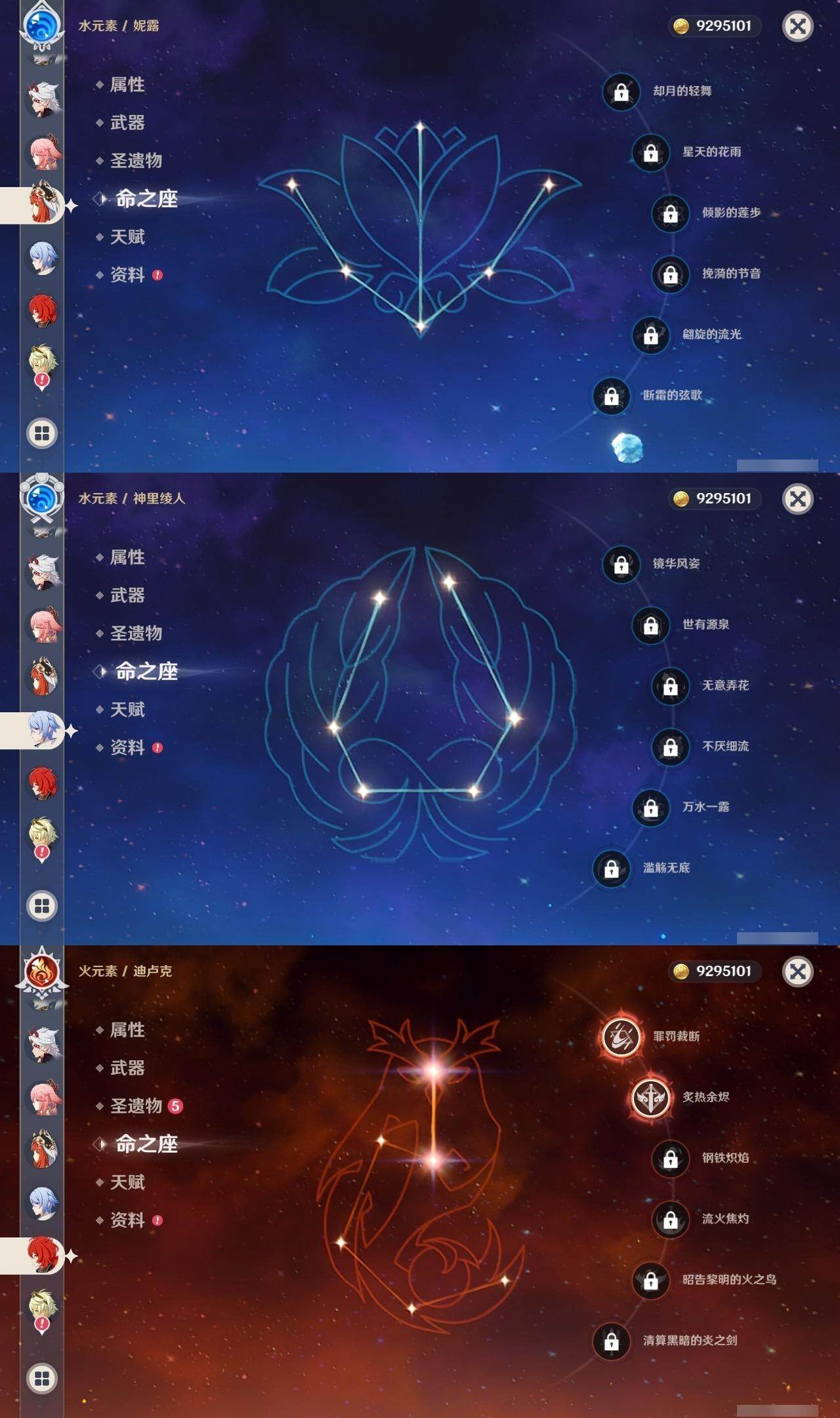 0命纳西妲,0命妮露,0命神里绫人,0命八重神子,0命申鹤,1命荒泷一斗,0命雷电将军,0命神里绫华,0命钟离,0命胡桃,0命甘雨,0命刻晴,2命七七,2命琴,0命莫娜,2命迪卢克,精1千夜浮梦,精1雾切之回光,精1护摩之杖,精1天空之翼,精1阿莫斯之弓,精1狼的末路
