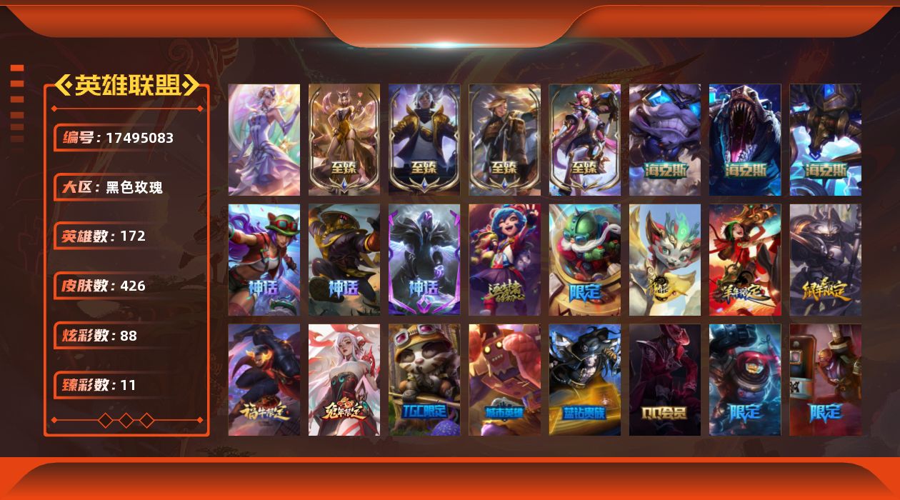 [17495083]【店主推荐捡漏号!可直接换绑】白银段位-172英雄-426皮肤-88炫彩-1终极-12神话-48限定-47传说-102史诗