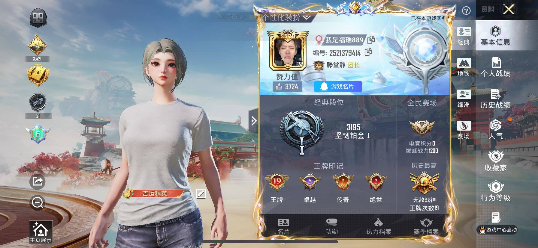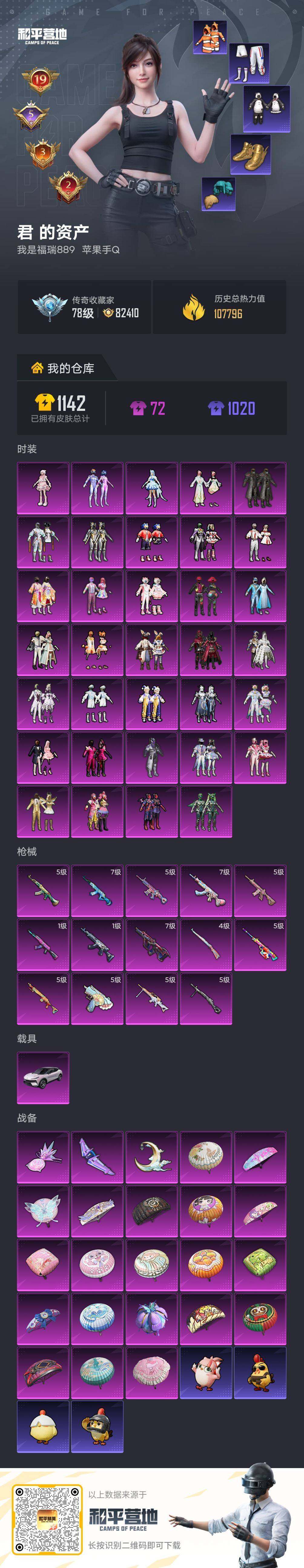 - [11631003]2粉装 2特效枪 1载具 9印记 可二次 可修改实名 优质装备:玛莎拉蒂Ghibli(粉),奇异狩猎者,M762激战未来,七级M762-激战未来,未来领航者 热门装扮:垂柳戏鸭,彩虹嘻嘻猴 稀有枪皮:DP-28-豹影疾电 五级特效枪:五级DP-28-豹影疾电 紫色装扮:田园牧歌,轻风白浪,和煦暖阳,SS22特训,SS23特训,娇憨猪猪,萌趣咩咩,SS21特训,SS2特训,SS3特训,SS5特训,凛冬战士,北国孤狼,千禧之恋,午夜朋克,旭日情侣,SS20特训,飞驰魅影,音速流光,极速竞梦,SS19特训,吉莉礼服,甜心亚梦,虚音幻奏,电音精灵,沁蓝冰爽,SS18特训,都市漫游者,都市魅力,酷萌兔限定,野性战心,金鼠迎春,长空猛禽,雨林探路者,雪山征服者,雪山精英,霓虹街区,青春校园,风暴特警,耀眼新星,荧惑魅影,蓝色守护者,跃动心情,绛羽幽主,骑行爱好者,龟仙人,和平特警,极地朋克,柠萌假日,沙漠兵团,派对绅士,圣诞大吉,坚韧舞者,夏日音浪,夜莺强袭者,战地菁英,探宝勇士,攀登者,甜蜜菠萝,疯狂小兔子,破蛋小黄鸡,神秘领域,甜蜜告白,竞技勇士朋克,王牌教练,牛气冲天,灰色格斗者,炫蓝之夏,热血青春,熔岩使者,牛气满满,特战装甲,玉兔迎春,竞技名士,神气柴柴,懵萌河马,SS24特训(SS24特训套装),萤火魅影(套装-荧惑魅影),SS25特训,粉红小猪,SS27特训,炽焰拳师,格斗专家,SS6特训,五号元素,拳皇97八神庵,SS7特训,深蓝冒险家,迷域探索者,SS8特训,SS12特训,SS9特训,SS10特训,耀粉歌者,萌黄之夏,金耀舞者,蓝调潮人,贵族骑装,光之冒险,传奇侦探,特种空勤,半糖蓝莓,红剪之缘 优质战备:暗夜鎏金降落伞,飒粉甜心降落伞,精灵迷巫降落伞,深海曼妙降落伞,洛神天依降落伞
