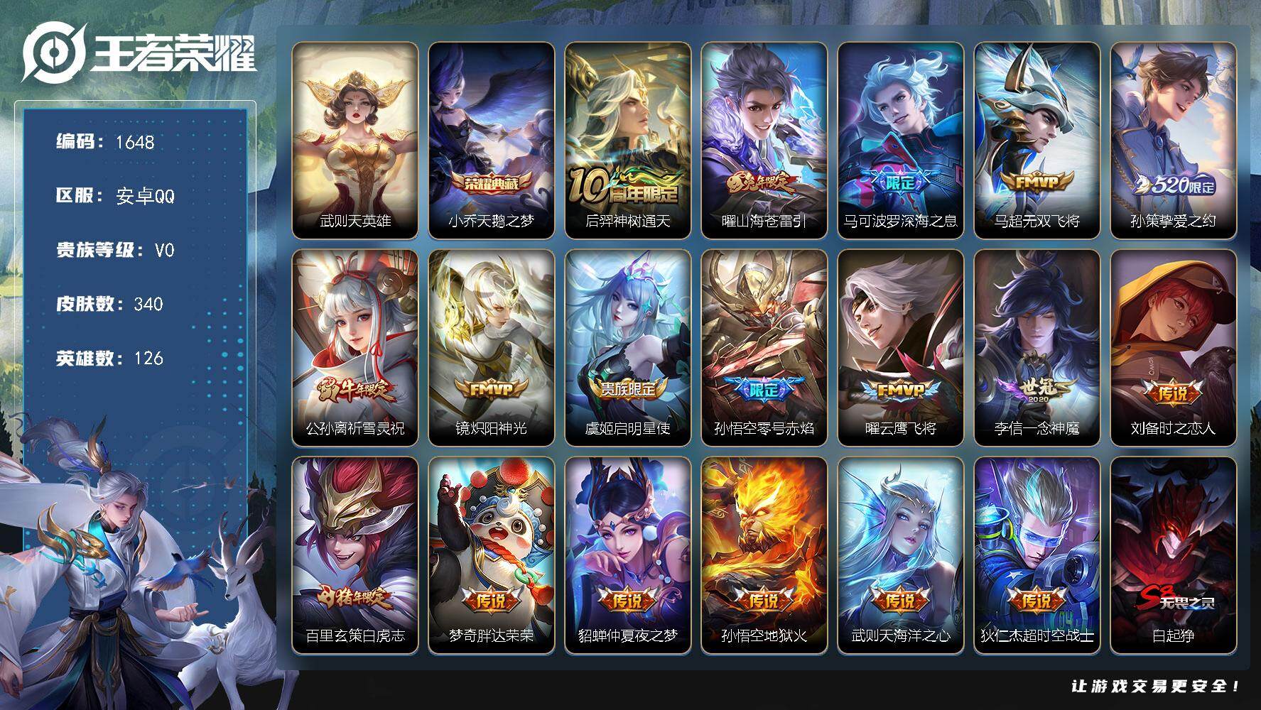 [17503177]【1648】安卓Q-V0-至尊星耀IV段位-126英雄-340皮肤-1典藏皮肤-1典藏英雄-18传说-101史诗