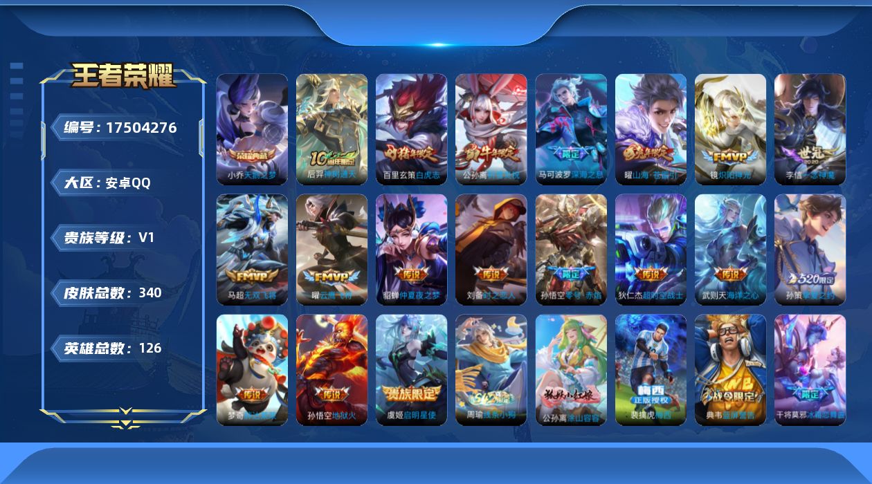 [17504276]【1648】安卓Q-V0-至尊星耀IV段位-126英雄-340皮肤-1典藏皮肤-1典藏英雄-18传说-101史诗