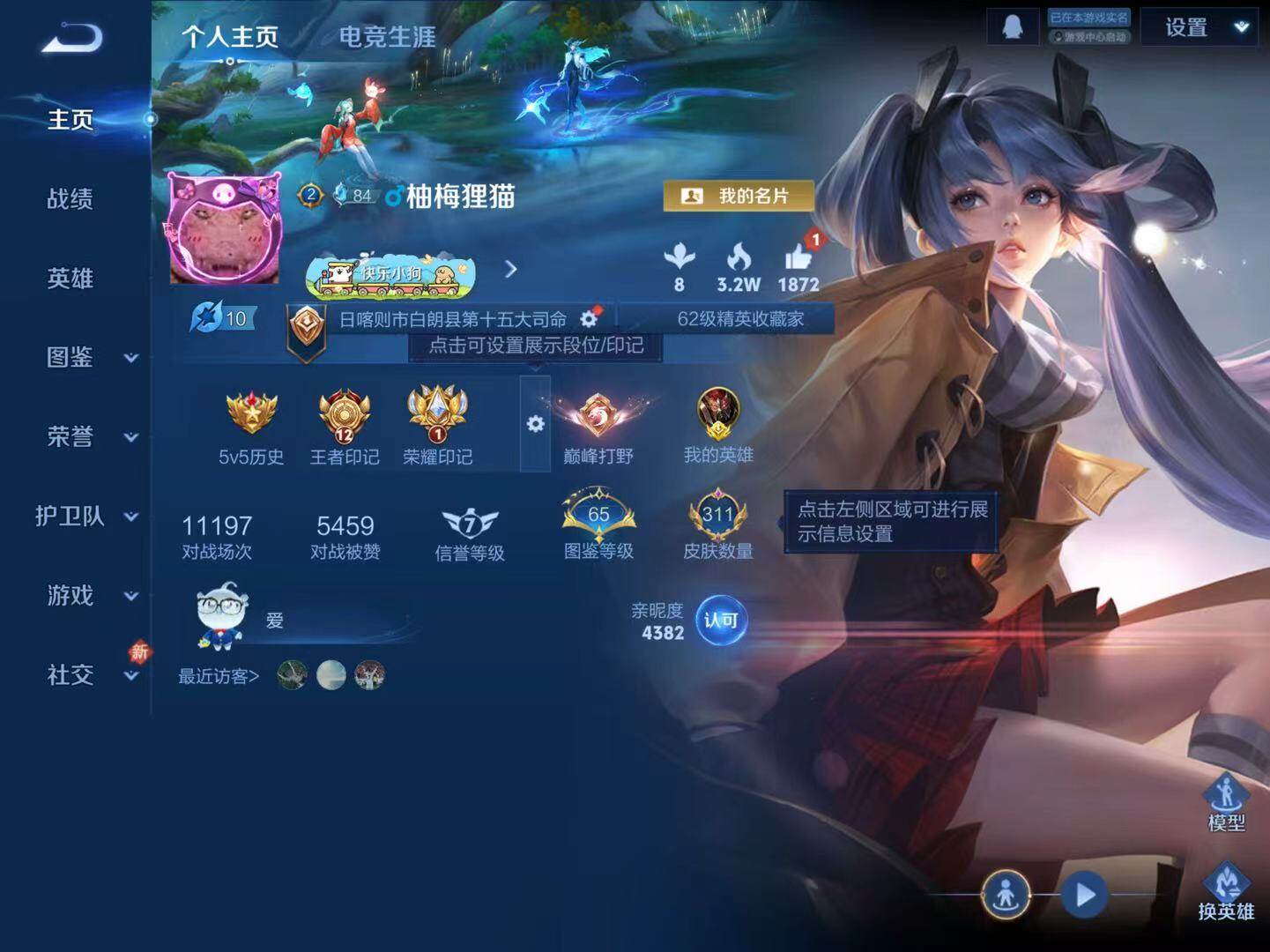 - PX_2100581-实名: 可修改 贵族等级: V7 英雄数: 124 皮肤数: 243 荣耀水晶: 九霄神辉 传说皮: 黄金狮子座,云鹰飞将,一念神魔,零号·赤焰,山海·炽霜斩 限定皮: 遇见飞天,李小龙,奔雷神使,游园惊梦,梁祝,时雨天司,逐梦之音,至尊宝,霸王别姬-虞姬,五谷丰年,山海·玄木吟,逐霄战戟