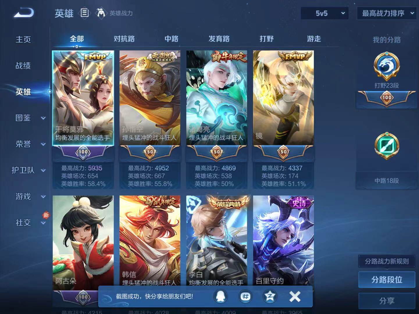 - [14778575]万战虞姬 按键7 安卓Q-V8-最强王者段位-127英雄-372皮肤-1典藏皮肤-11传说-104史诗 【英雄全皮】:刘邦全皮,孙权全皮,鬼谷子全皮,蒙恬全皮,影全皮 【荣耀典藏】:夏侯惇无限飓风号 【传说皮肤】:后羿神树通天,云缨幻光神枪,桑启鸣野蒿,铠冥王哈迪斯,张飞百相守梦,孙策末日机甲,瑶时之祈愿,鲁班七号寅虎瑞焰,镜炽阳神光,虞姬启明星使,孙悟空地狱火 【限定皮肤】:白起狰,铠冥王哈迪斯,暃埋骨钱,蔡文姬夏日便利店,大乔绒语心约,虞姬夏日便利店,姜子牙天穹之誓,狄仁杰阴阳师,赵云皇家上将,赵云百木心枪,墨子神迹守卫,嬴政优雅恋人,嬴政白昼王子,孙尚香蔷薇恋人,鲁班七号狮舞东方,鲁班七号寅虎瑞焰,庄周高山流水,阿轲迷踪丽影,孙膑天狼运算者,扁鹊奇幻香踪,白起夜都怪侠,芈月重明,芈月幻夜卜梦,吕布猎兽之王,周瑜赤莲之焰,元歌云间偶戏,元歌无心,夏侯惇朔风刀,甄姬游园惊梦,曹操烛龙,典韦穷奇,典韦蓝屏警告,马可波罗暗影游猎,狄仁杰魔术师,狄仁杰万华元夜,达摩星际陆战队,达摩沙漠行僧,项羽海滩派对,老夫子醍醐杖,老夫子航海奇遇记,关羽百相守梦,程咬金演武夺筹,刘邦夺宝奇兵,兰陵王驯魔猎人,兰陵王金庭之子,亚瑟潮玩骑士王,牛魔御旌,后羿如梦令,后羿圣弓游侠,刘备百相守梦,张飞百相守梦,李元芳银河之约,李元芳云中旅人,虞姬霸王别姬,虞姬启明星使,钟馗神迹守卫,钟馗驱傩正仪,杨玉环遇见飞天,杨玉环寅虎心曲,杨戬潮玩骑兵,女娲朔望之晖,干将莫邪真爱魔法,雅典娜单词大作战,雅典娜黎明之约,太乙真人饕餮,鬼谷子原初探秘者,鬼谷子五谷丰年,黄忠火炮绅士,苏烈千军破阵,百里玄策原初追逐者,百里守约朱雀志,弈星混沌棋,梦奇顽趣,公孙离玉兔公主,沈梦溪星空之诺,沈梦溪大漠名商,明世隐疑决卦,明世隐吟游魔法,裴擒虎李小龙,裴擒虎擒涛扼浪,狂铁御狮,米莱狄御霄,米莱狄胡桃异想国,瑶时之祈愿,云中君纤云弄巧,盾山御銮,猪八戒西部大镖客,嫦娥拒霜思,西施玲珑珍味,蒙犽狂想玩偶喵,鲁班大师探海日志,桑启海盐诗旅,艾琳流音漫舞,司空震地狱燃心,阿古朵江河有灵,张良古海寻踪,蒙犽百解令,蒙恬荣光圣徽,高渐离燃音魔法,妲己灵卜魔法,鬼谷子天穹祈灯,沈梦溪龙舞盛年,鲁班七号蔬乡物语,李元芳蔬乡物语,刘邦剑破天穹,程咬金群星魔术团,镜青焰无极,项羽苍威无极,刘备异域游侠,周瑜熔金海岸 【年限皮肤】:百