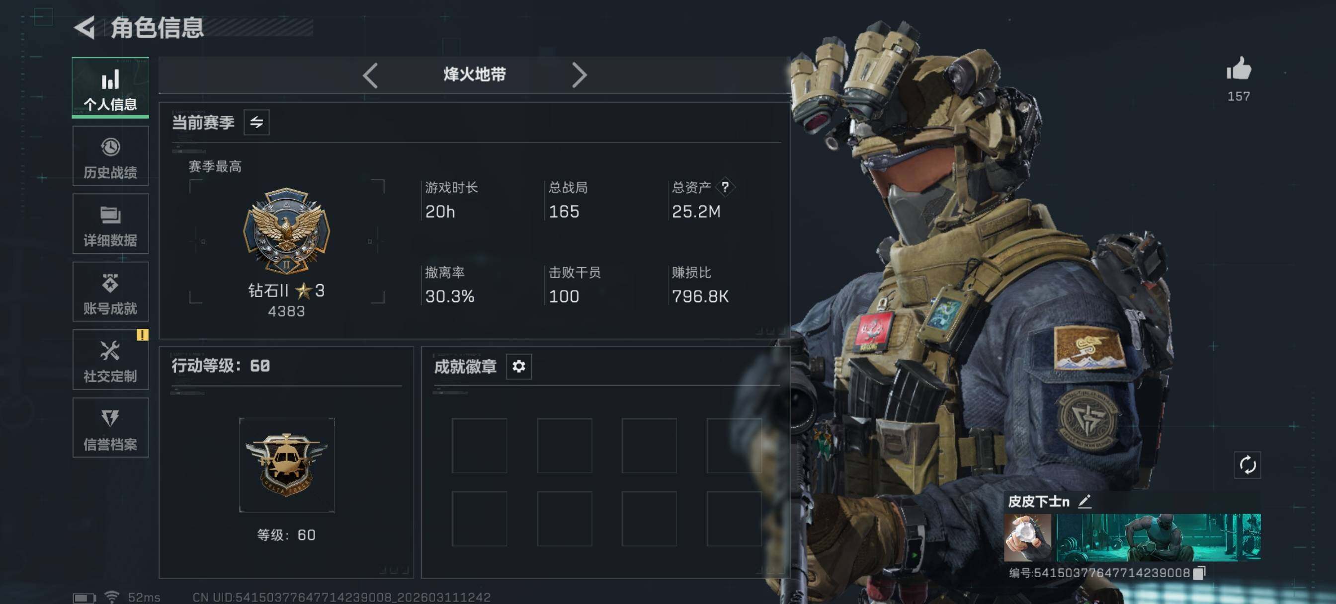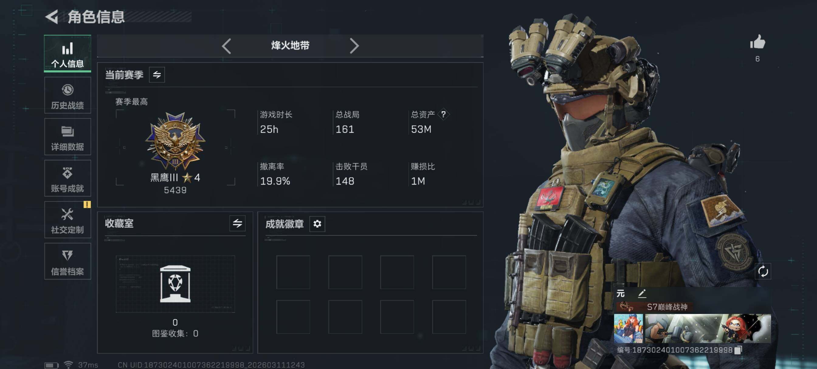 [17511794]【特价出售/店主推荐】 52m总资产-78k哈伏币-60烽火等级-黑鹰-17战场等级-上等兵