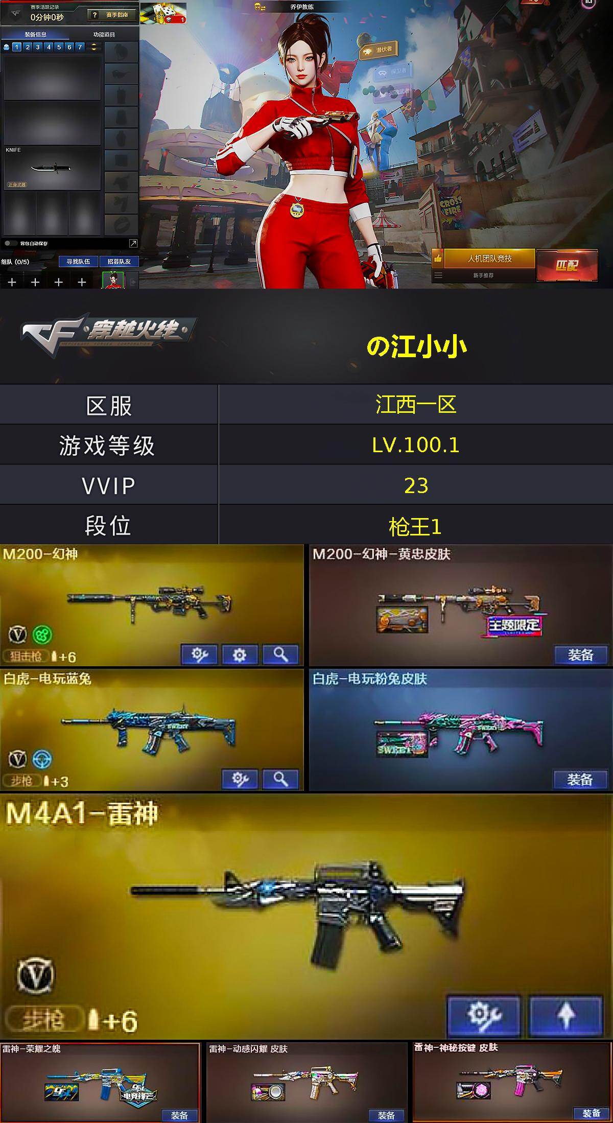 - [12835415]【91】48V/100级/大元首/13王者/3炫金/1英雄/QBZ03-金色蔷薇/Scar Light-白虎/M200-幻神/死亡之眼/白虎-电玩蓝兔/柯尔特-冠军之特/M4A1-黑骑士/RPK-盘龙/雷神-小红/沙鹰-修罗/Knife-冠军之刃/炫金天龙/炫金毁灭/炫金修罗/M200-幻神音效卡/AK47-火麒麟音效卡/M4A1-雷神音效卡/M4A1-黑骑士音效卡/Barrett-毁灭音效卡/金色蔷薇音效卡/绝迹语音包/M200-幻神-黄忠/幻神丹凤/幻神-CFS2022/雷神-星空/雷神冠军之魄/雷神-宠儿-2019MVP/火麒麟-冠军之心/火麒麟-华夏之心/火麒麟-平天大圣/火麒麟-心动糖果/黑骑士-冠军之势/毁灭-星空/毁灭-冠军之怒/修罗-星空/屠龙-荣耀之锋/王者-瞳-闭月羞花/王者玲珑/鹰/职业选手/天龙-曼陀罗/AWM-灵狐-15周年嘉年华/COP-旗袍/迷你超能女侍/神圣爆裂者-末日/冰龙粉碎者-白马银枪/柯尔特-电竞装甲/无影-神兵利器/M4A1-雷神/M4A1-黑龙/M4A1-死神/AK47-麒麟/AK47-火麒麟/AK47-黑武士/AN94-超新星/AWM-天龙/Barrett-毁灭/Barrett-极光/AWM-裁决/M4A1-龙血/Barrett-朱雀/AK47-黑鲨/M4A1-千变/AK-47-猩红传说/AK47-B-战神/M4A1-赤狱骑士/沙鹰-天神/麒麟刺/擎天/屠龙