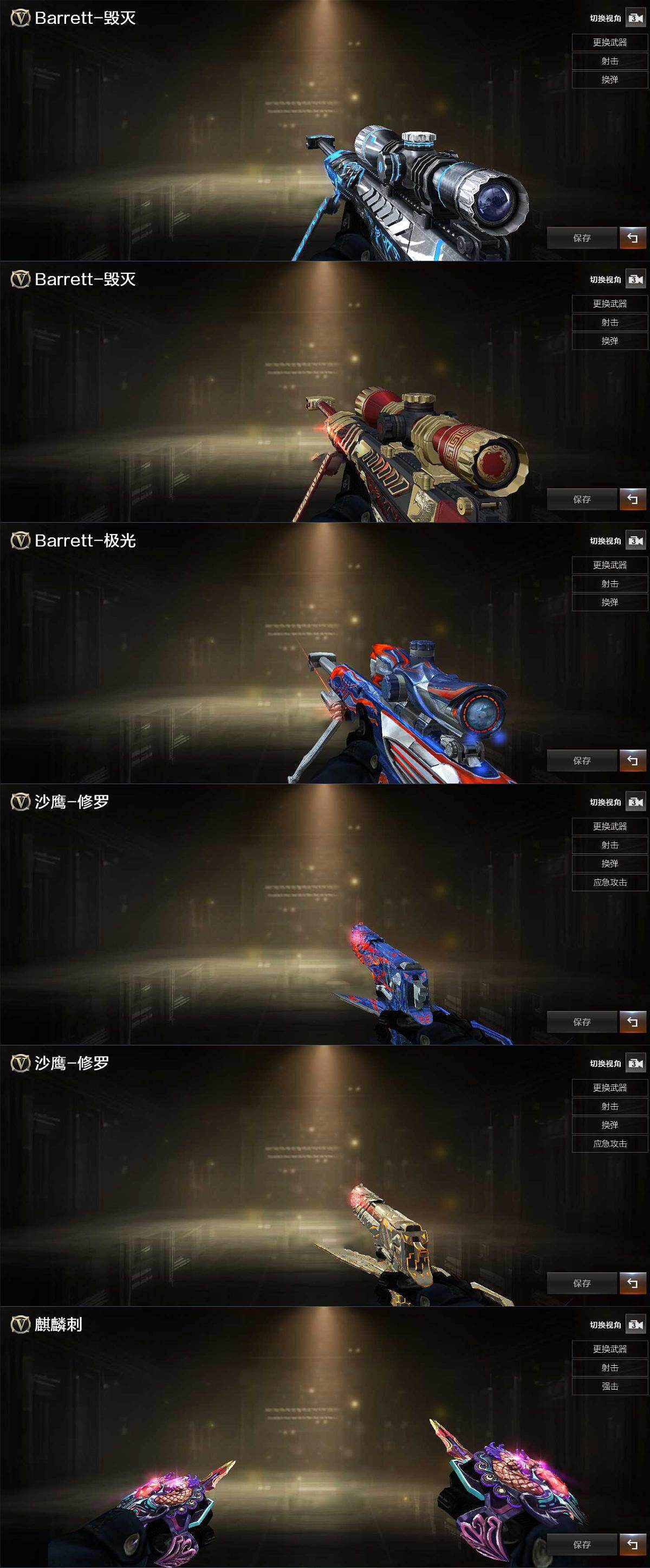 【皮肤】:毁灭-风暴,毁灭-秦师 皮肤,极光-能量核心,修罗-能量核心,修罗耀金皮肤,麒麟刺-月皮肤