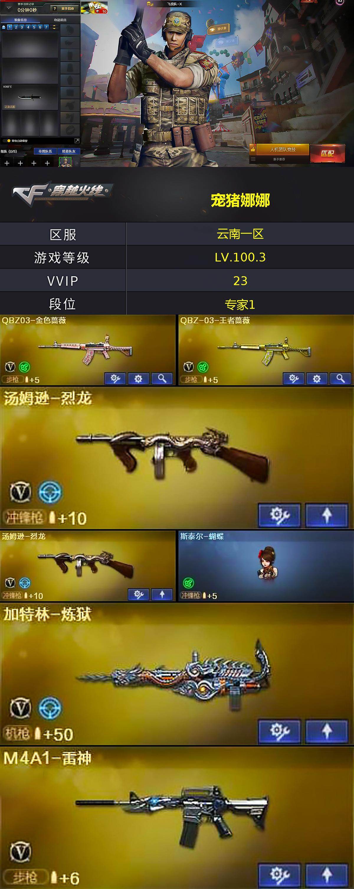 【热门武器】:QBZ03-金色蔷薇,M4A1-黑骑士,汤姆逊-烈龙*2,加特林-炼狱,斯泰尔-蝴蝶,沙鹰-修罗