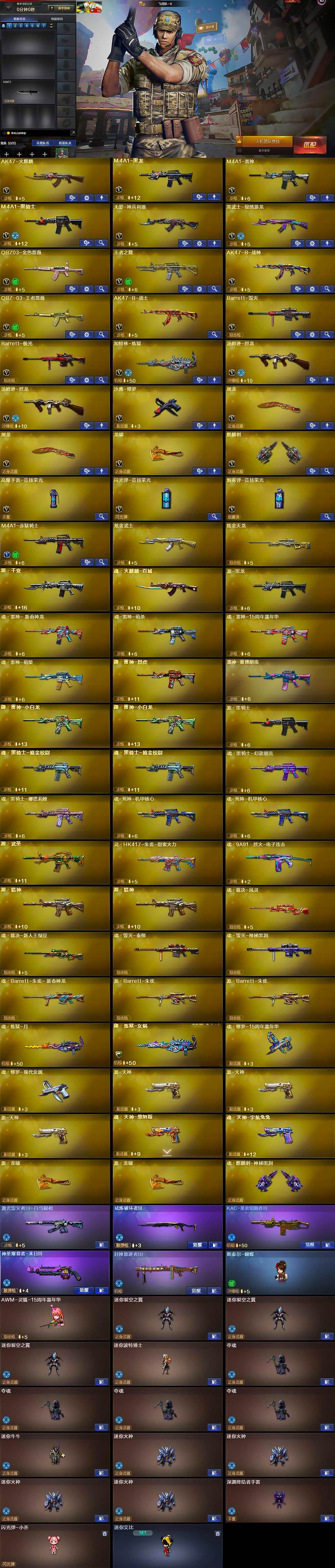 【源级武器】:源-千变,魂·火麒麟-百城,源-黑龙,魂·雷神-新春神龙,魂-雷神-萌杀,魂·雷神-15周年嘉年华,魂·雷神-萌柴,御·雷神-机甲刑天,御·雷神-烈虎,雷神-赛博朋克,御·雷神-小白龙*2,源·黑骑士,魂·黑骑士-摸金校尉*2,魂·黑骑士-幻能朋克,魂·黑骑士-娜塔莉娅,御·黑骑士-冰魄,魂-死神-机甲核心*2,源·超新星,源·武圣,源·青龙,灵·HK417-朱雀-甜蜜火力,魂·9A91·烈火-电子连击,源·猎神*2,魂·裁决-凤灵,魂·裁决-新人王绿豆,魂·毁灭-秦师,魂·毁灭-青帝*2,魂·毁灭-神秘黑洞,魂·Barrett-朱雀- 新春神龙,源·Barrett-朱雀*2,魂·炼狱-月,御·炼狱-女娲,魂·修罗-15周年嘉年华,魂·修罗-现代金属,源·天神*3,魂·天神-阿努比斯,魂·天神-维纳斯,魂·天神-宇航兔兔,源·龙啸*2,魂·龙啸-秦