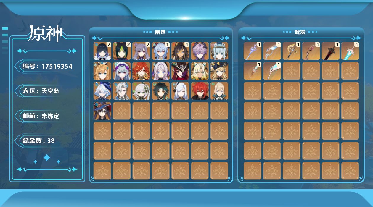 [17519354]60级/38黄/男主/22个五星角色/8个五星武器