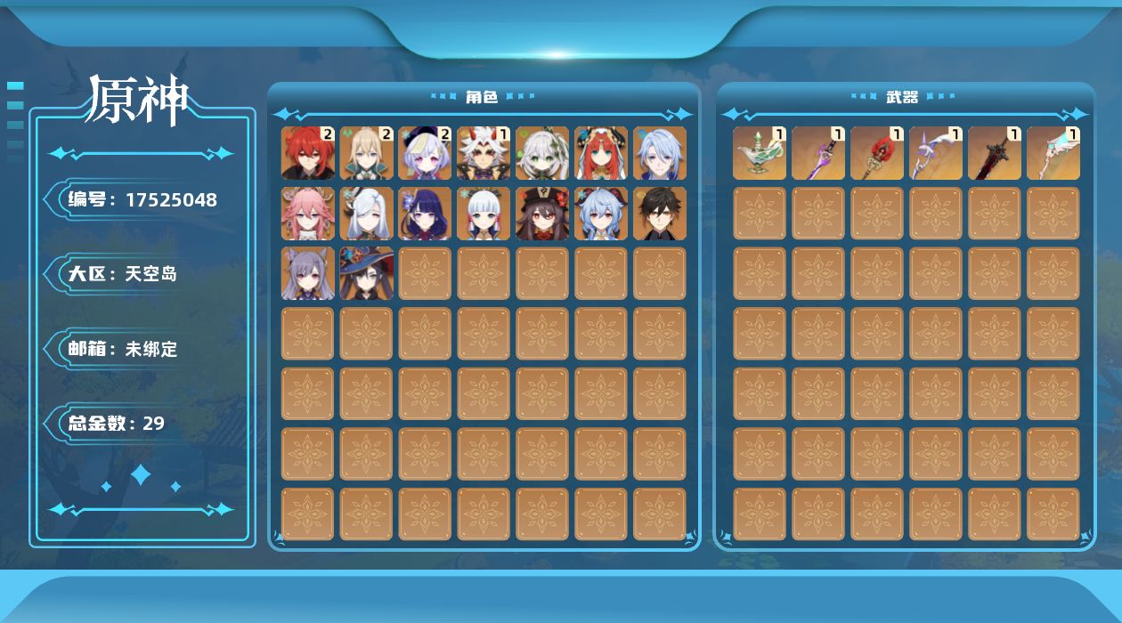 [17525048]57级/29黄/女主/16个五星角色/6个五星武器