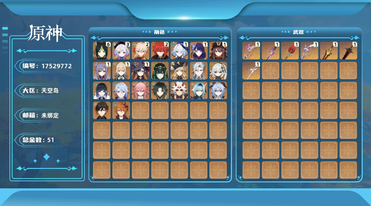 [17529772]60级/51黄/女主/23个五星角色/9个五星武器
