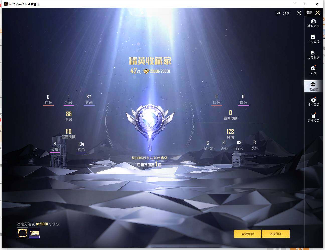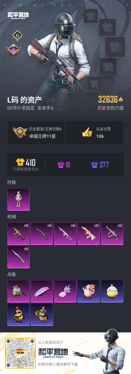 安卓 手Q-1粉装-6特效枪-0载具-2粉色飞行器-32636热力值-6王牌印记-88套装-121枪皮