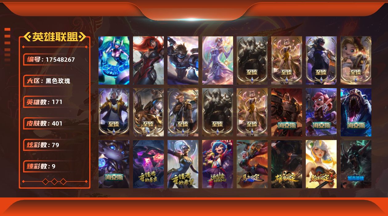 [17548267]可二次【特价出售/店主推荐】未定级段位-171英雄-401皮肤-79炫彩-4终极-17神话-51限定-32传说-86史诗