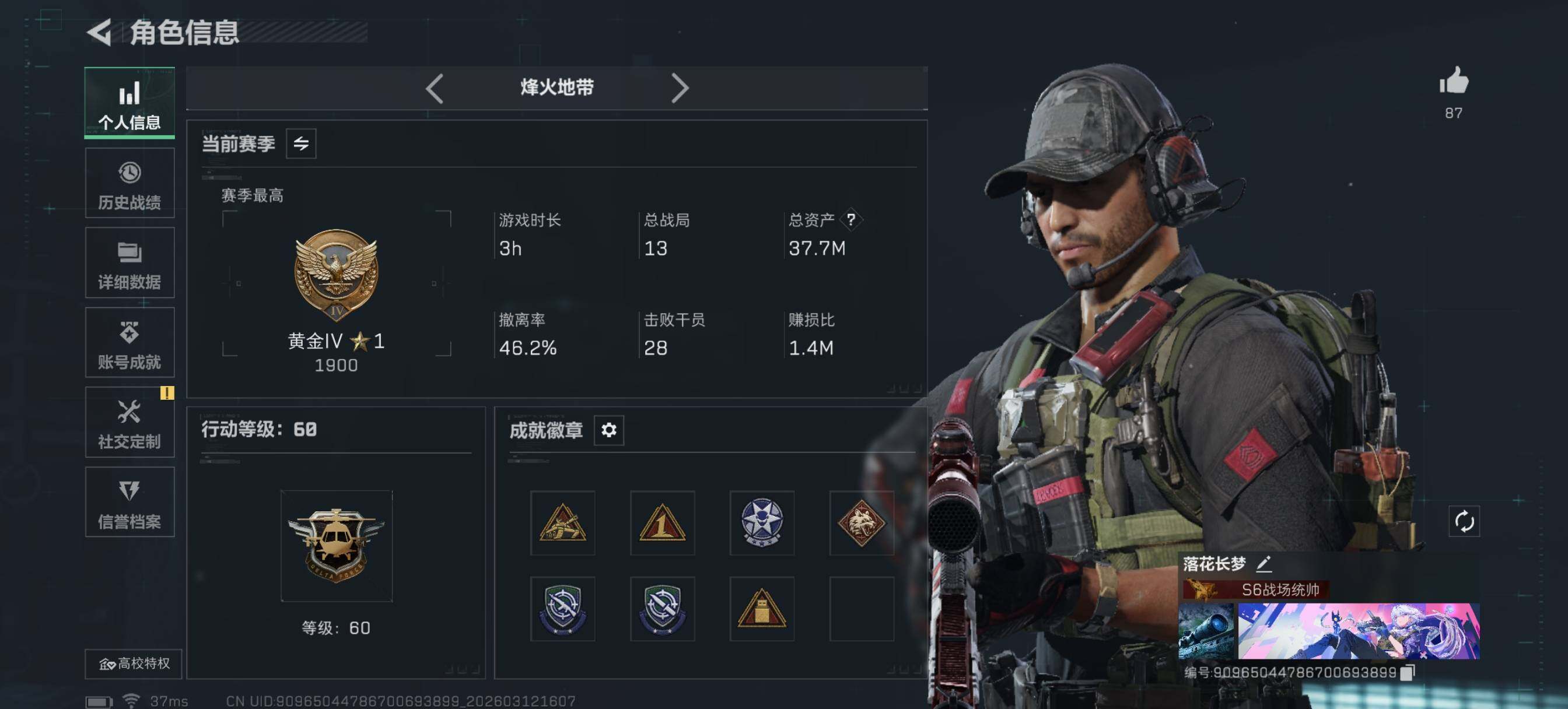 [17548434]【特价出售/店主推荐】37m总资产-1698k哈伏币-60烽火等级-黄金-50战场等级-尉官