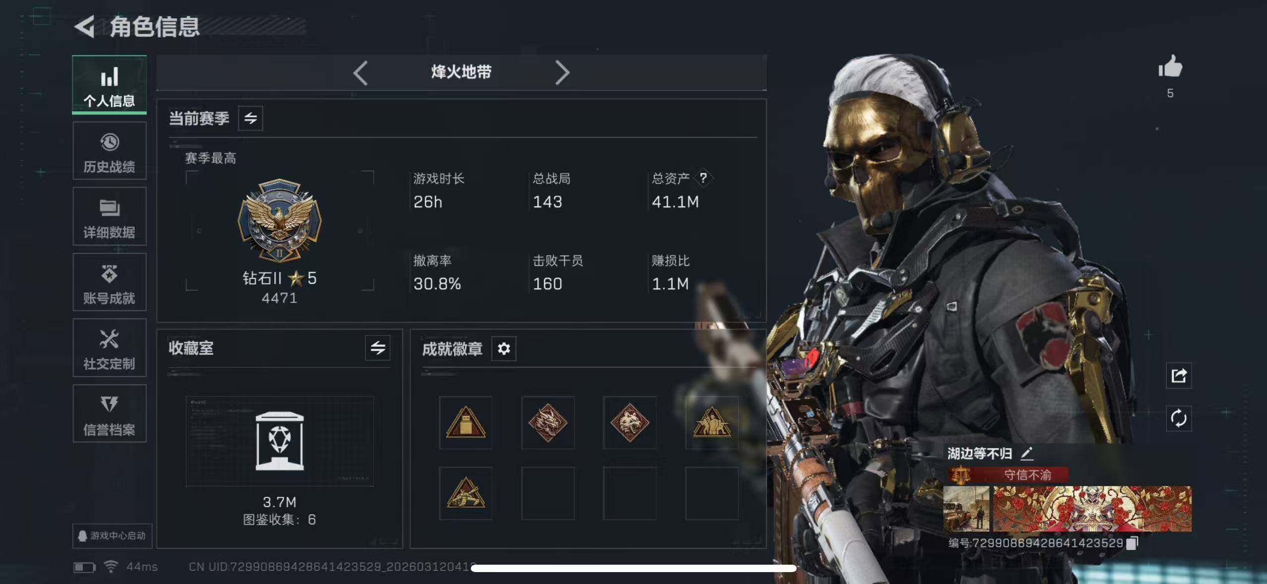 [17548520]可2次实名【特价出售/店主推荐】41m总资产-2790k哈伏币-60烽火等级-钻石-18战场等级-上等兵