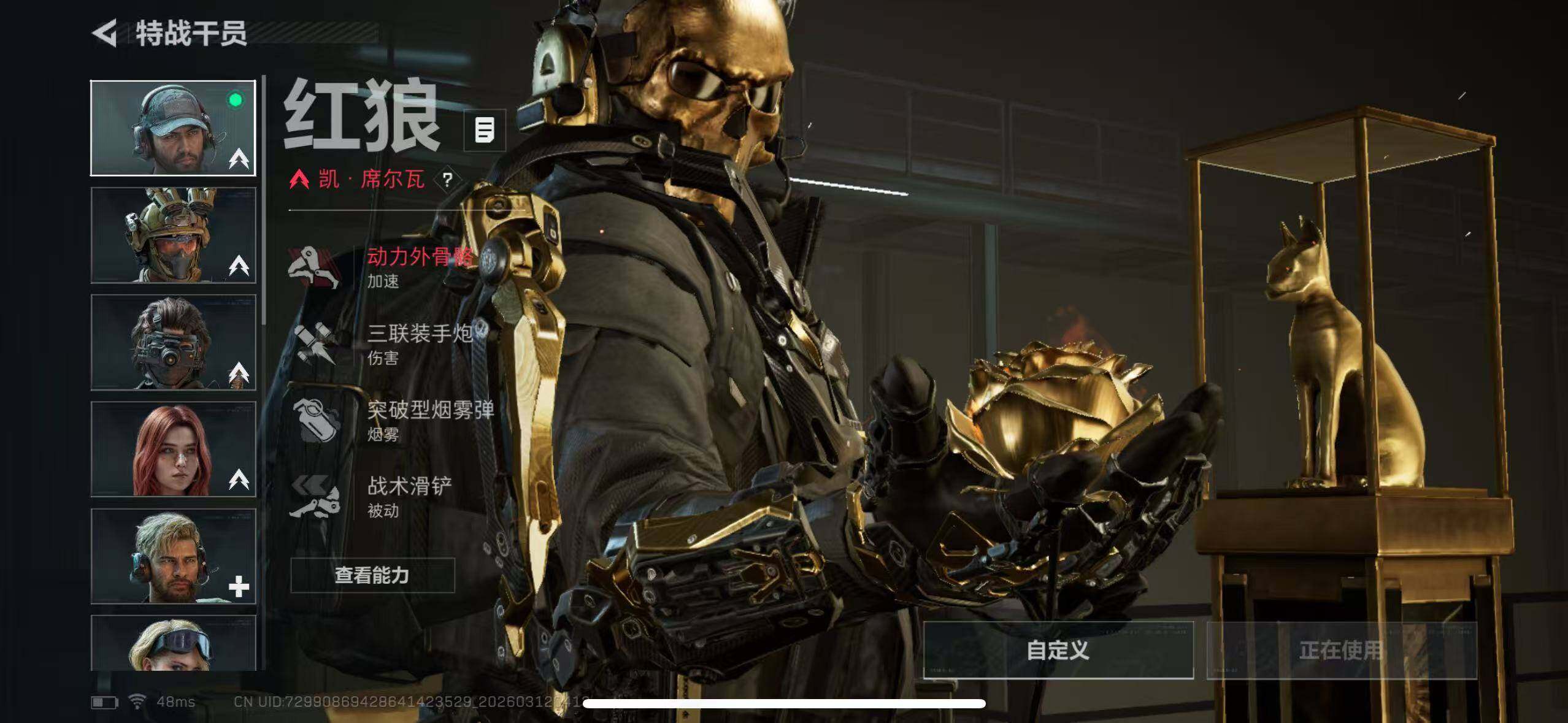 【干员外观】:红狼-蚀金玫瑰,蜂医-送葬人·无题密令,红狼-电锯惊魂,露娜-金牌射手,蛊-不羁人生
