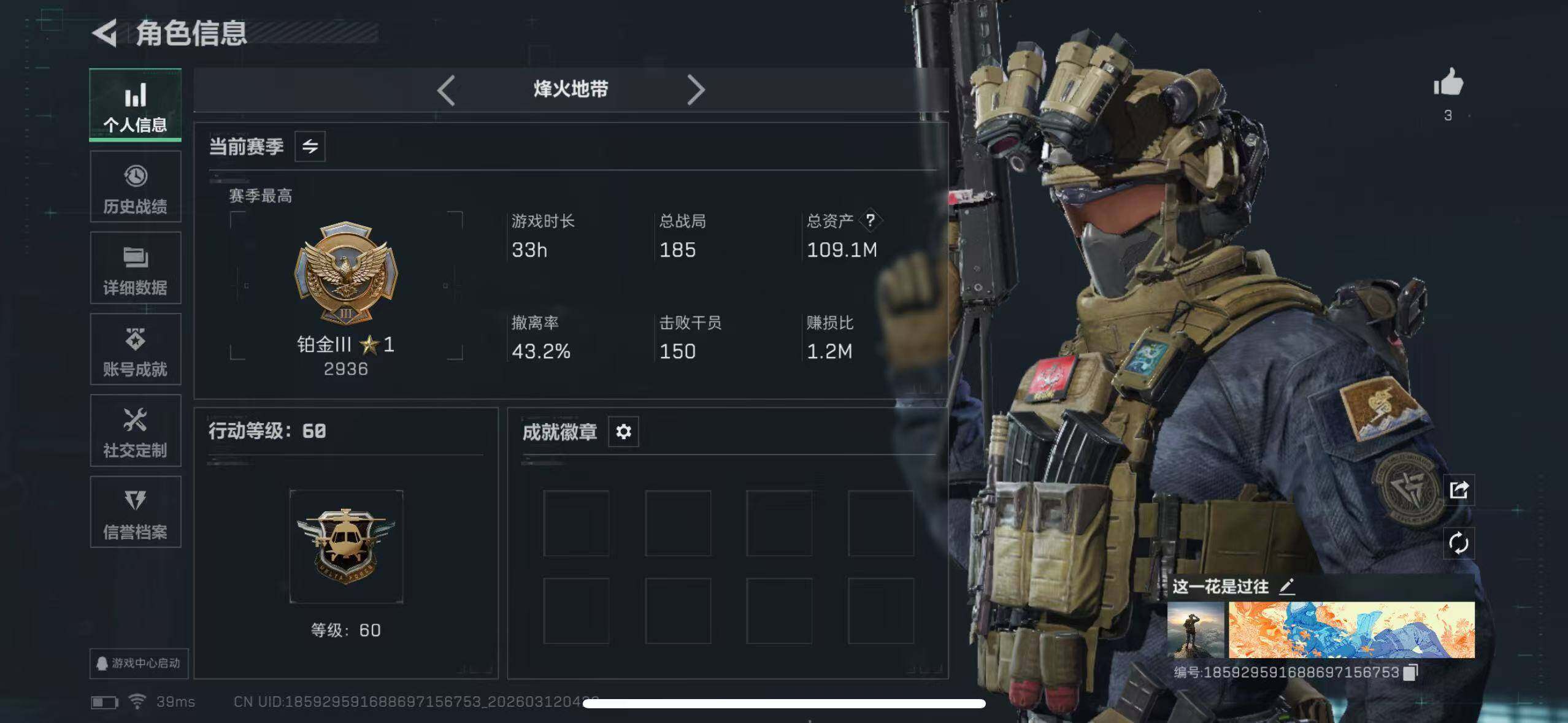 [17548539]【特价出售/店主推荐】109m总资产-61275k哈伏币-60烽火等级-铂金-1战场等级-无军衔