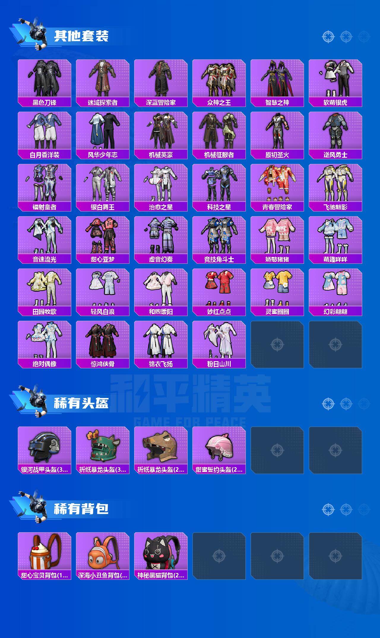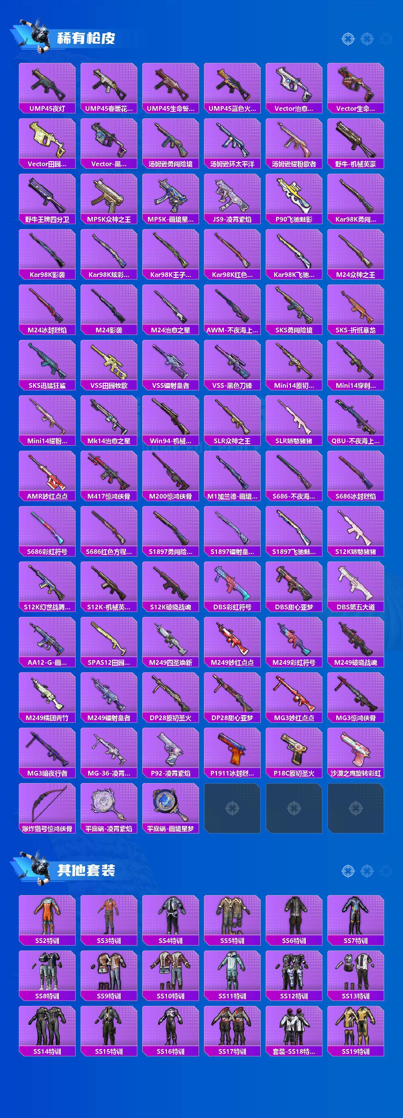 - [15781171]苹果 手Q-15粉装-16特效枪-1载具-7粉色飞行器-76242热力值-9王牌印记-147套装-233枪皮 【热门品类】:粉装-缤纷油彩,套装-赤蝎幽灵,套装-胖达圆圆,套装-动感兔斯基人偶服,套装-龟仙人,套装-红熊茄茄 【粉色载具】:宾利飞驰(布罗德盖棕双色) 【粉色套装】:粉装-缤纷油彩,粉装-冰霜白皇,粉装-炙焰红王,粉装-彩虹甜喵,粉装-冰川幽秘,粉装-第五大道,角色-呆萌星弥,角色-小可学妹,粉装-莲影清波,角色-绝色倾城,套装-创世·救赎,粉装-雪月幻音,角色-幻海仙踪,粉装-幻彩电音,角色-羊梦糖心 【粉色枪皮等级】:AKM-幽焰骑士(三级),SCAR-L-锦绣绵绵(五级),SCAR-L-时空协奏(三级),M416-心之恋语(四级),GROZA-镜光银凌(五级),AUG-超新星(七级),AUG-许七安(三级),汤姆逊-热量炸弹(五级),AKS-74U-星穹咏叹调(四级),Kar98K-巳巳如意(五级),M24-莲影清波(四级),Mk14-甜梦熊击(五级),SPAS-12-蜜语绒猫(一级),M249-彩虹甜喵(二级),DP-28-豹影疾电(五级) 【粉色枪皮】:AKM-幽焰骑士,SCAR-L-锦绣绵绵,SCAR-L-时空协奏,M416-心之恋语,GROZA-镜光银凌,AUG-超新星,AUG-许七安,汤姆逊-热量炸弹,AKS-74U-星穹咏叹调,Kar98K-巳巳如意,M24-莲影清波,Mk14-甜梦熊击,SPAS-12-蜜语绒猫,M249-彩虹甜喵,DP-28-豹影疾电,烟雾弹-猫咪绅士 【粉色飞行器】:天之羽翼飞行器,冰川粉黛飞行器,冠军兔兔飞行器,深渊漩涡飞行器,圣域金龙飞行器,终晖之翼飞行器 【粉色降落伞】:童趣迷兔降落伞,暖熊萌萌降落伞,彩虹甜喵降落伞,第五大道降落伞,白勺歌姬降落伞,超新星降落伞,莲影清波降落伞,镜光幻境降落伞,繁龙极客降落伞,蜜语绒猫降落伞,精灵梦叶罗丽降落伞,月影灵韵降落伞,月下星之子降落伞,戏水时光降落伞,绯果甜心降落伞,星穹咏叹调降落伞,幻彩电音降落伞,时光之吻降落伞,桃源时光降落伞,绯穹魔姬降落伞,喜羊羊与灰太狼降落伞 【稀有套装】:套装-龟仙人,套装-绒宝小鹅,套装-巳巳如意,套装-小鸟芋圆,套装-荒原牛仔,套装-雏菊兔兔,套装-萝兰蝴蝶,套装-小熊娃娃,套装-火种守卫者,套装-糖糖葫芦,套装-青团波波,套装-