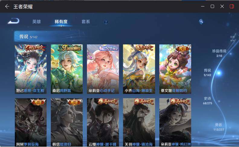 【传说皮肤】:妲己愿照众生和,桑启鸣野蒿,朵莉亚心动手记,小乔山海琳琅生,蔡文姬花朝如约