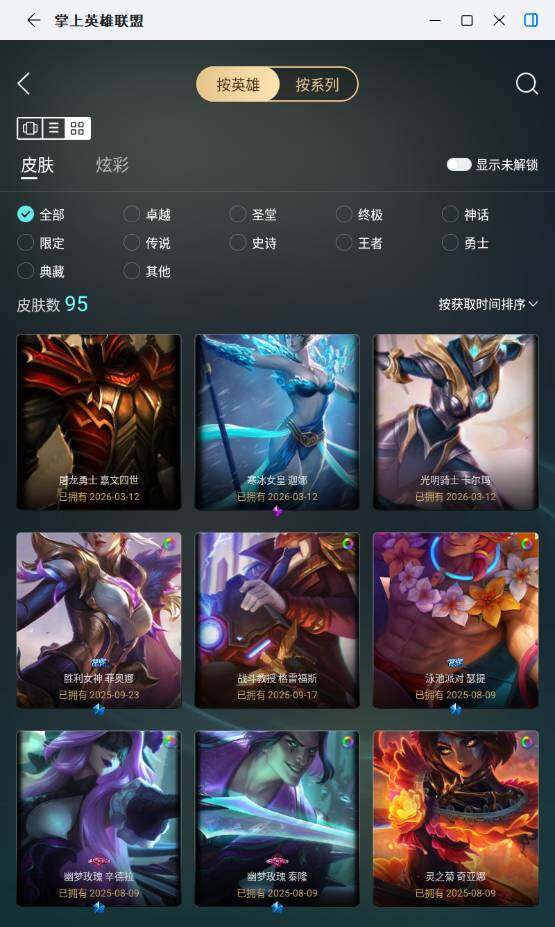 [17550949]未定级段位-102英雄-95皮肤-8炫彩-0终极-1神话-19限定-15传说-11史诗