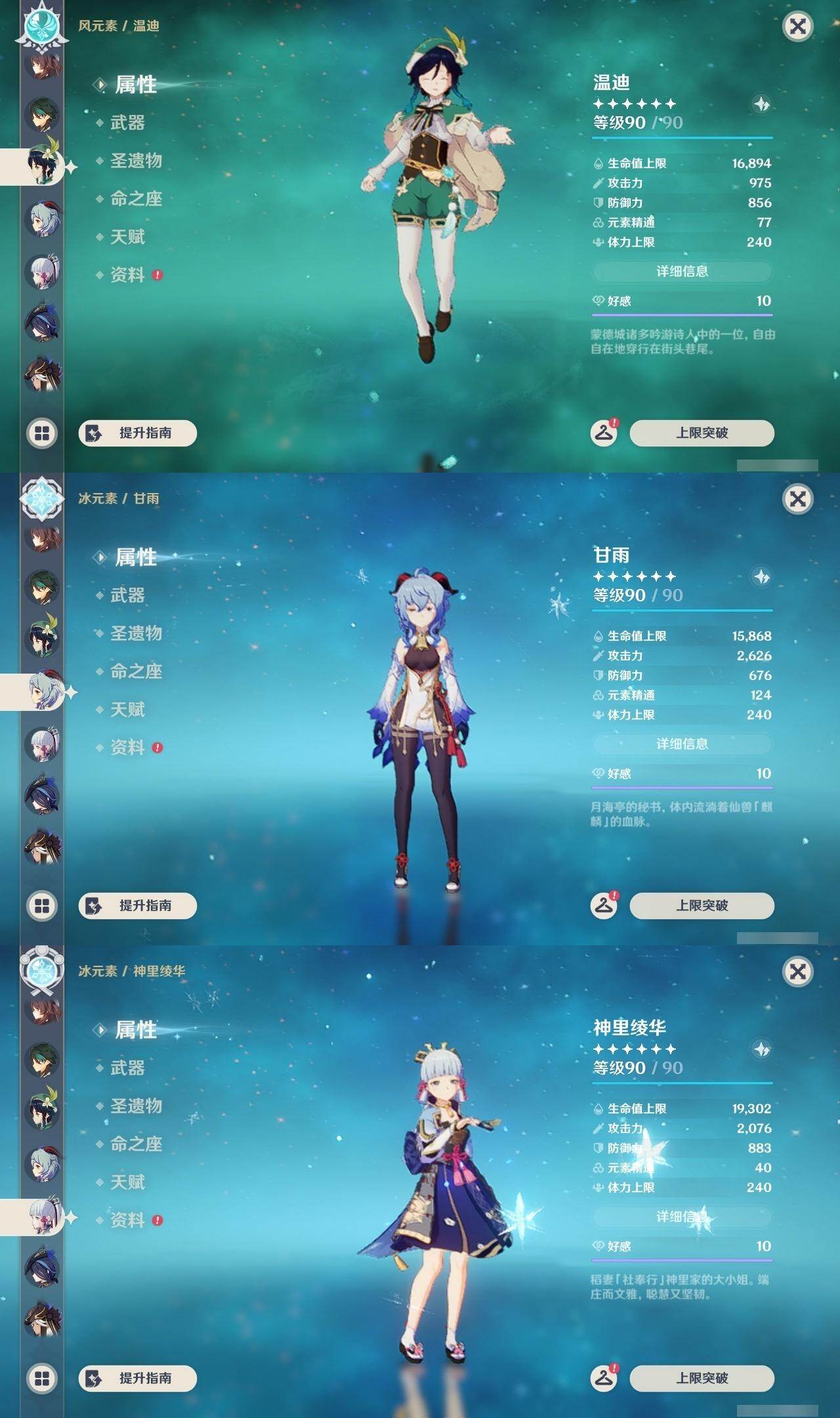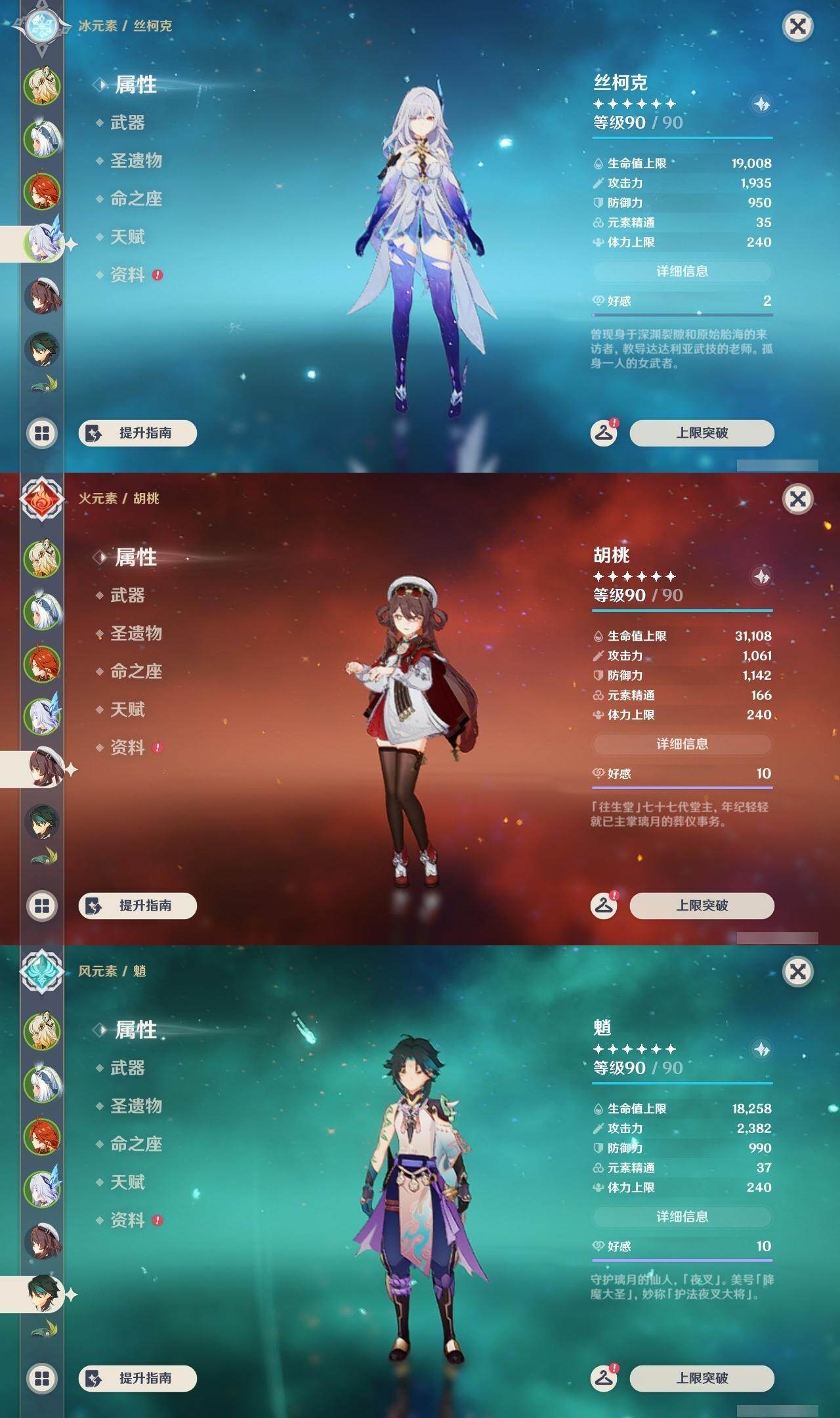 胡桃,魈,温迪,甘雨,神里凌华,八重神子,雷电将军,刻晴,达达利亚,珊瑚宫心海,钟离,枫原万叶,宵宫,琴,七七,莫娜,可莉,迪卢克