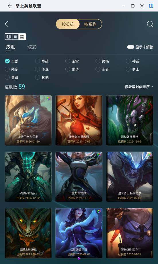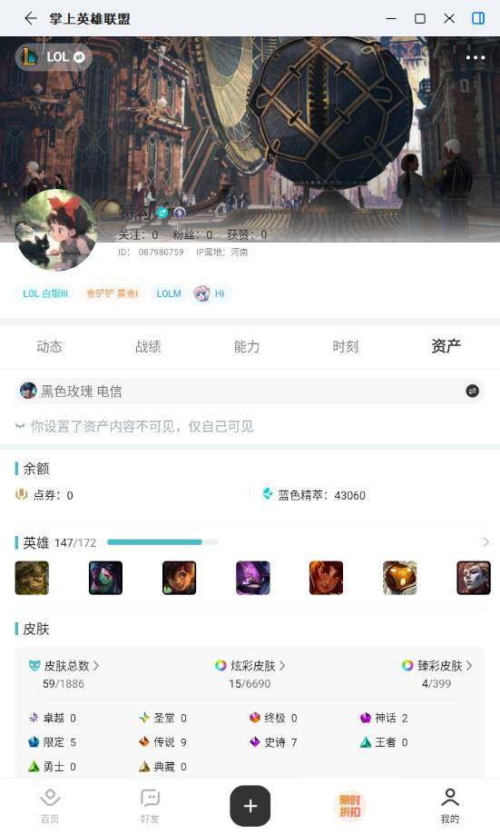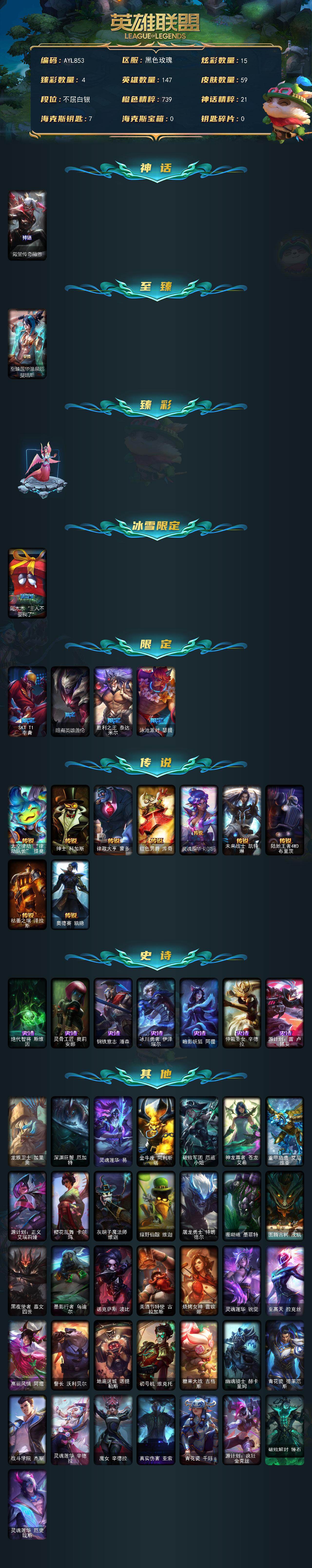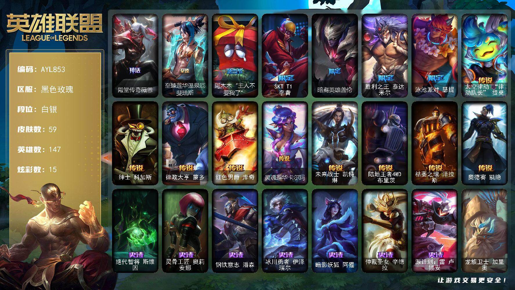 [17551767]白银段位-147英雄-59皮肤-15炫彩-0终极-2神话-5限定-9传说-7史诗