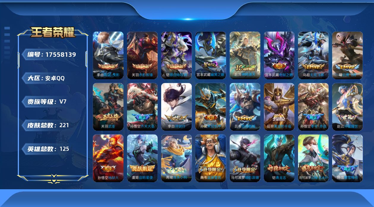 [17558139]【特价出售/店主推荐】4市标,安卓Q-V7-至尊星耀V段位-125英雄-221皮肤-3典藏皮肤-1星传说-14传说-63史诗