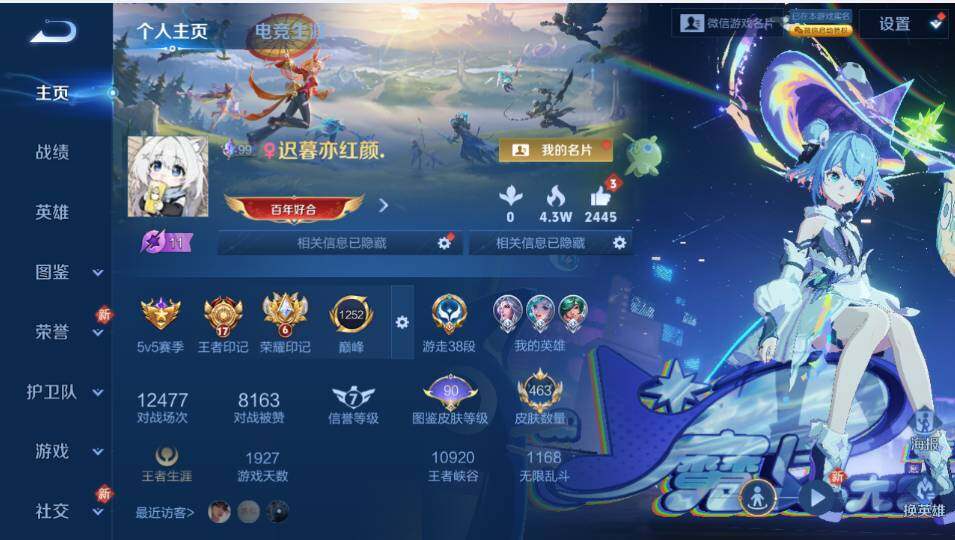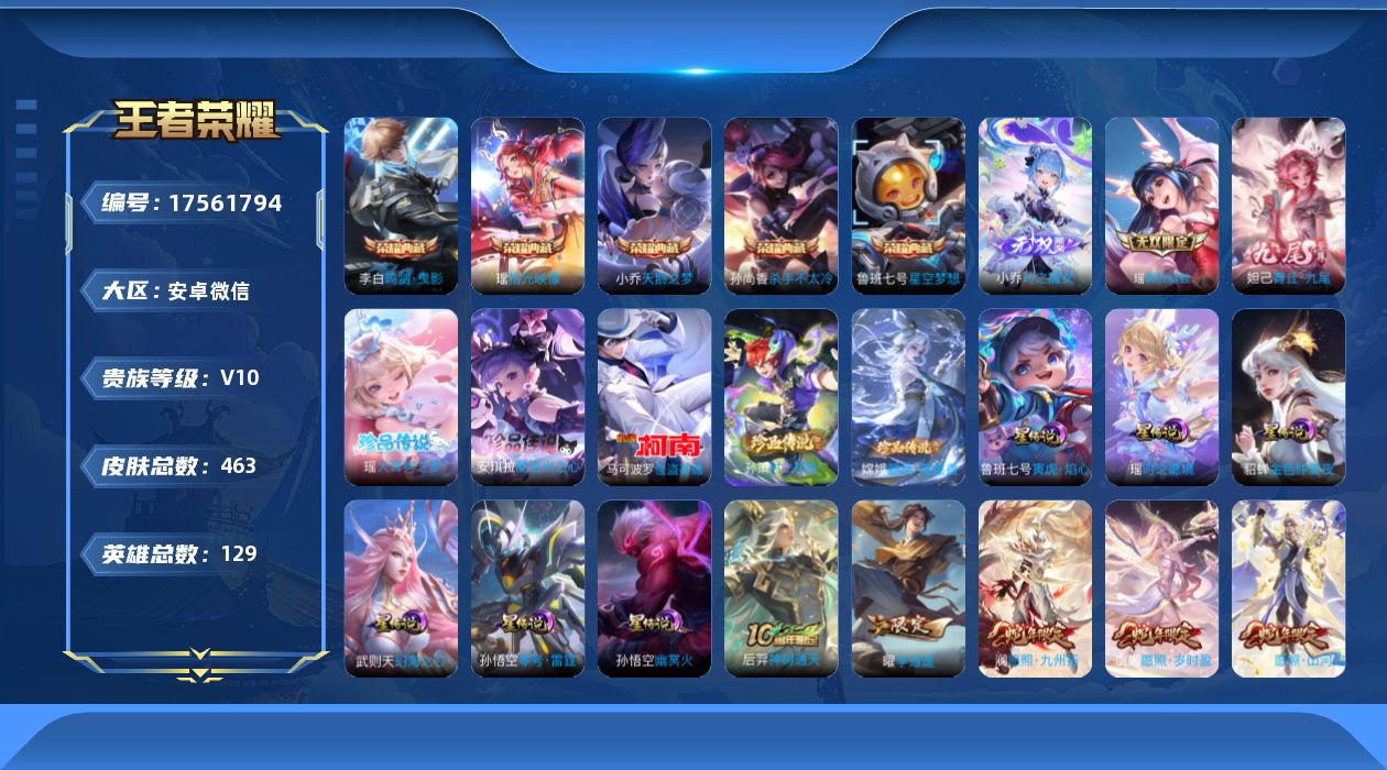 [17561794]女号!瑶全皮-3天幕-安卓WX-V10-最强王者段位-129英雄-463皮肤-5典藏皮肤-1典藏英雄-3无双-5珍品传说-6星传-66传说-142史诗