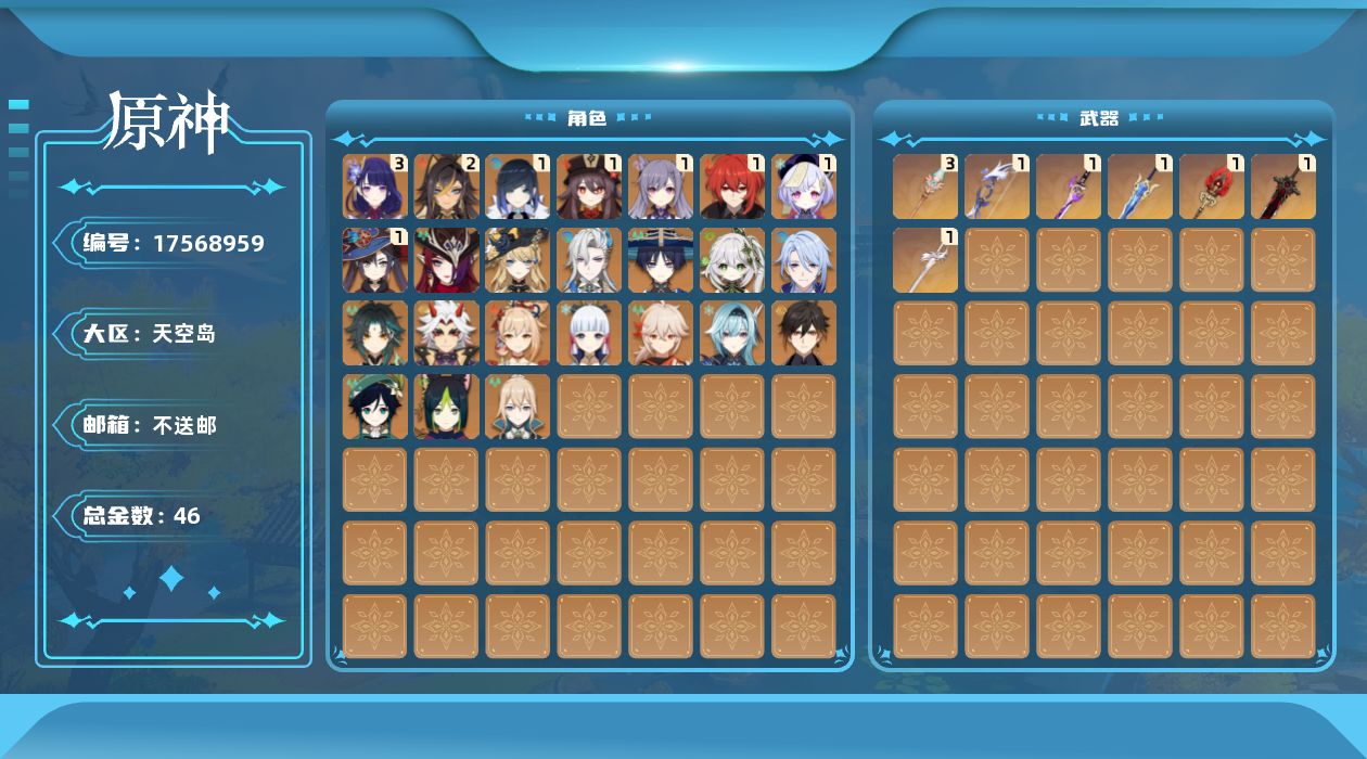 [17568959]56级/46黄/男主/24个五星角色/9个五星武器
