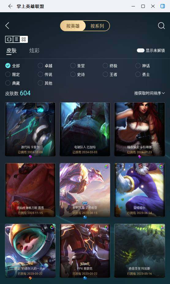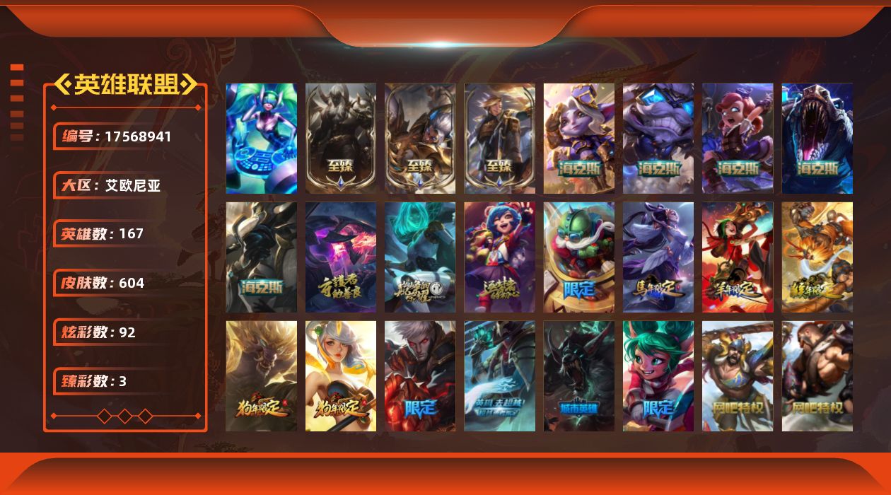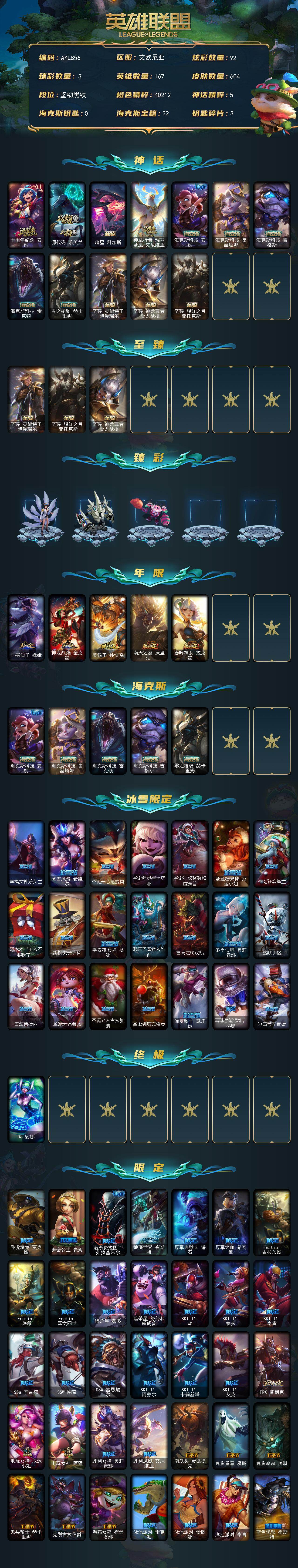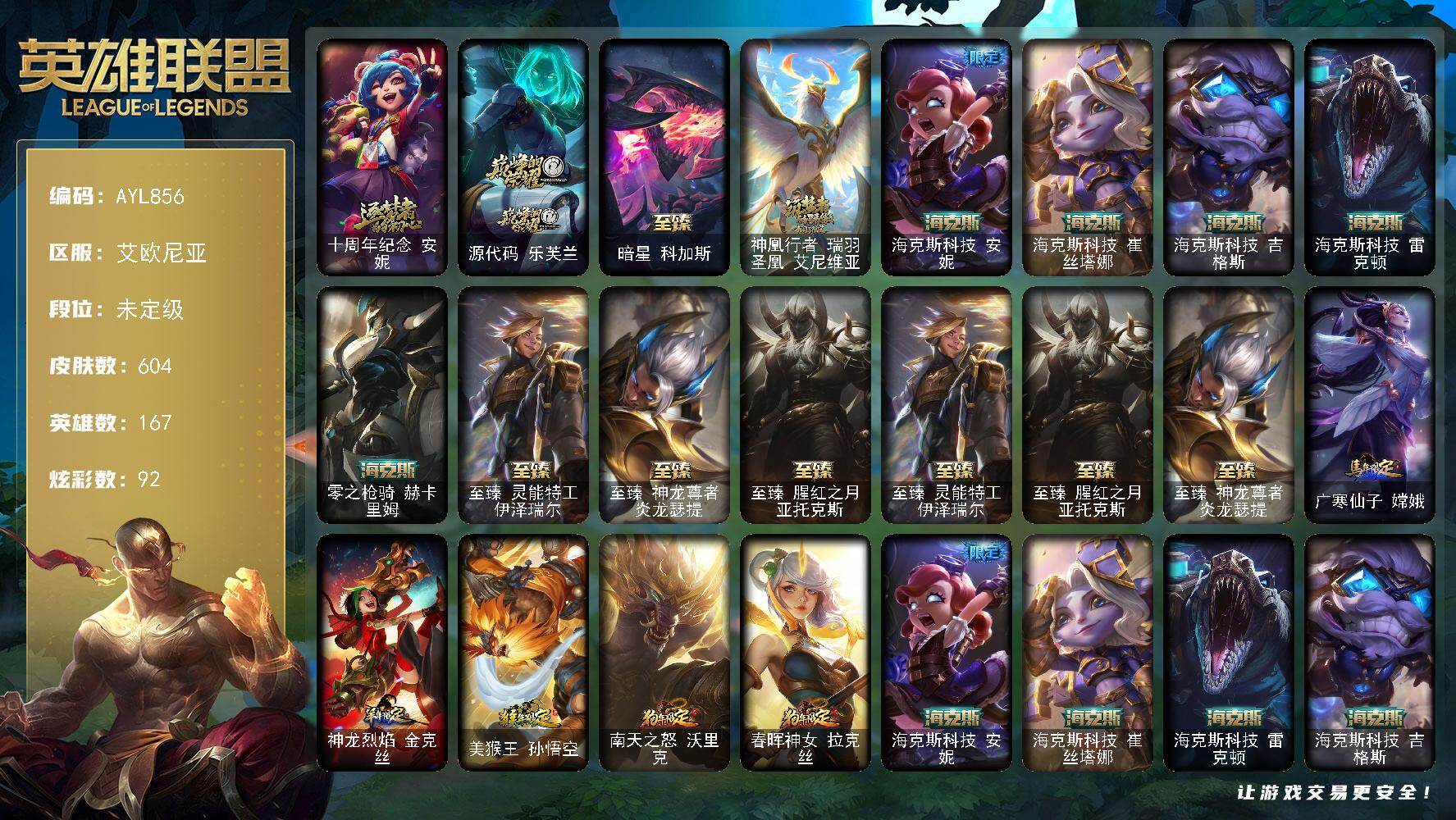 [17568941]未定级段位-167英雄-604皮肤-92炫彩-1终极-12神话-78限定-65传说-158史诗