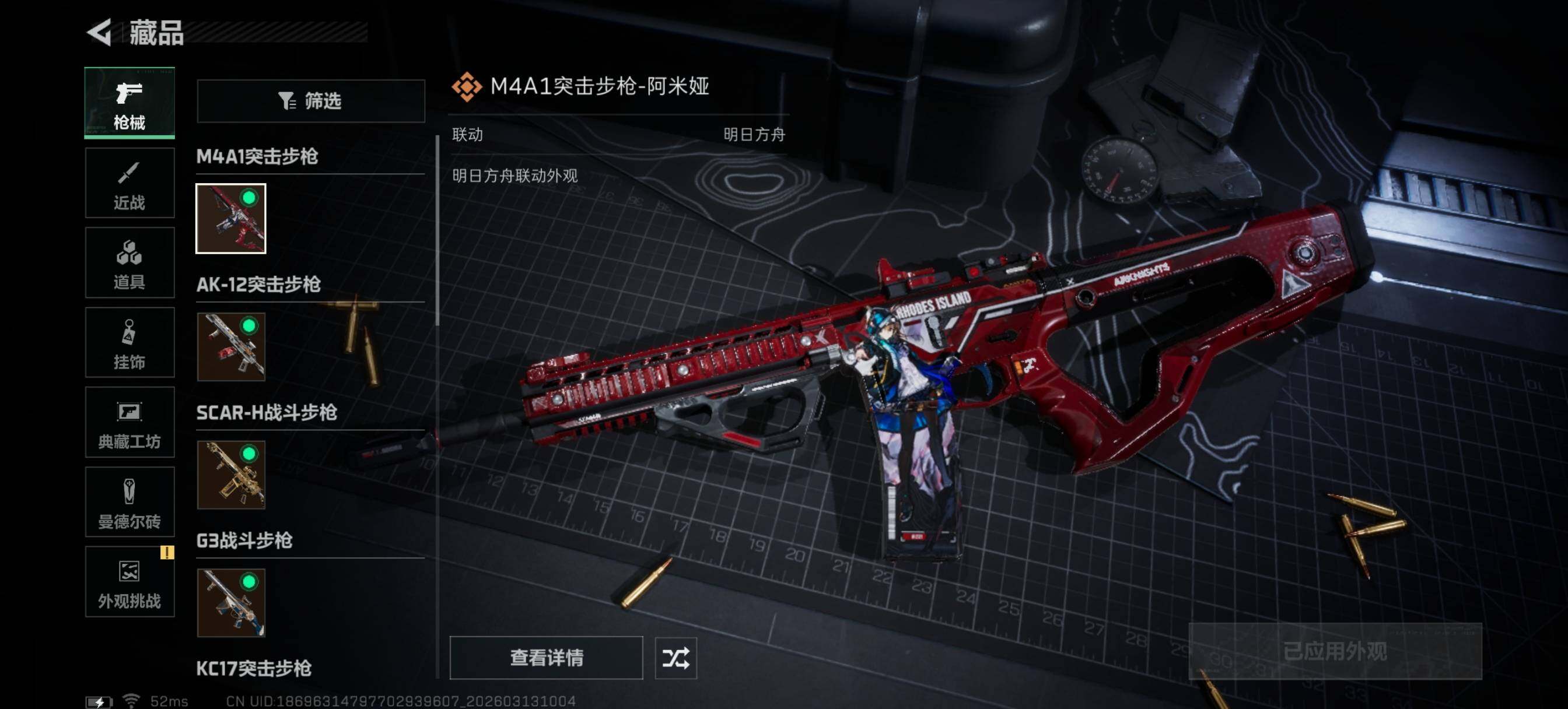 【普通外观】:M4A1突击步枪-高雅黑,M4A1突击步枪-海色,QBZ95-1突击步枪-海浪,QBZ95-1突击步枪-海色,QBZ95-1突击步枪-2026,腾龙突击步枪-三角洲力量,K416突击步枪-几何迷彩,K416突击步枪-高雅黑,M16A4突击步枪-山林猎人,M16A4突击步枪-高雅黑,AUG突击步枪-浅蓝涂装,SG552突击步枪-浅蓝涂装,G3战斗步枪-高雅黑,MP5冲锋枪-海色,MP5冲锋枪-黄蜂,野牛冲锋枪-高雅黑,勇士冲锋枪-磐石,M1014霰弹枪-高雅黑,M1014霰弹枪-海