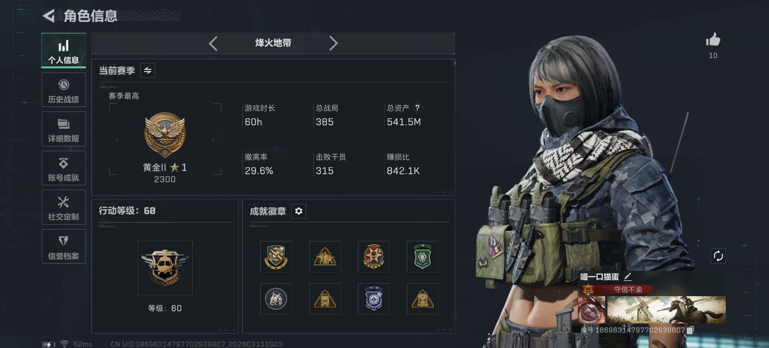 [17574685]【特价出售/店主推荐】541m总资产-405396k哈伏币-60烽火等级-黄金-1战场等级-无军衔