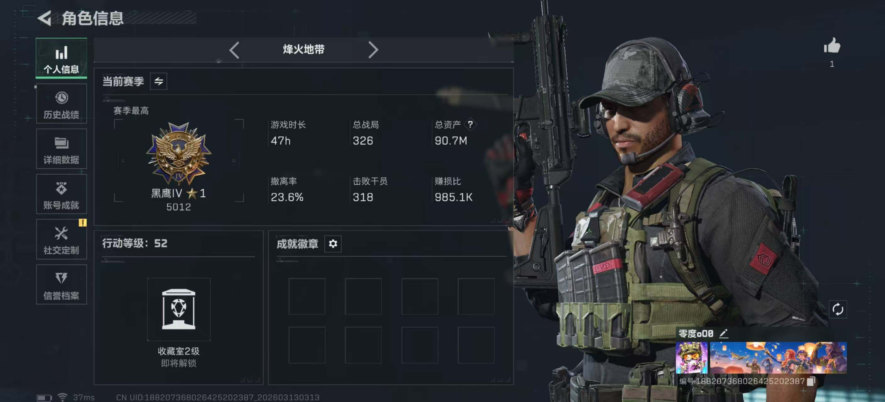 [17574708]【特价出售/店主推荐】90m总资产-4656k哈伏币-52烽火等级-黑鹰-1战场等级-无军衔