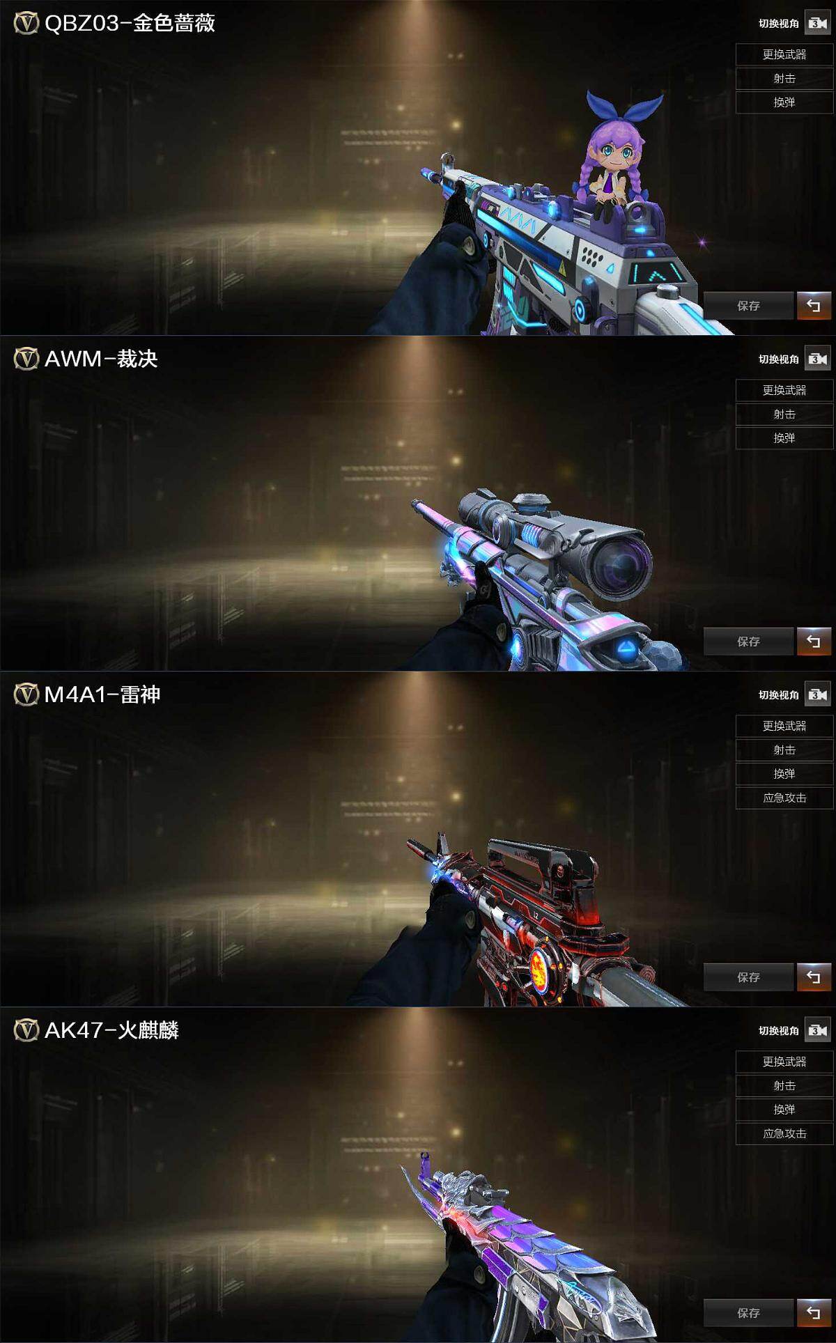 【皮肤】:金色蔷薇-破浪逐光 皮肤,裁决-流光秘银,雷神-暗月,AK47-火麒麟-传奇EVEN