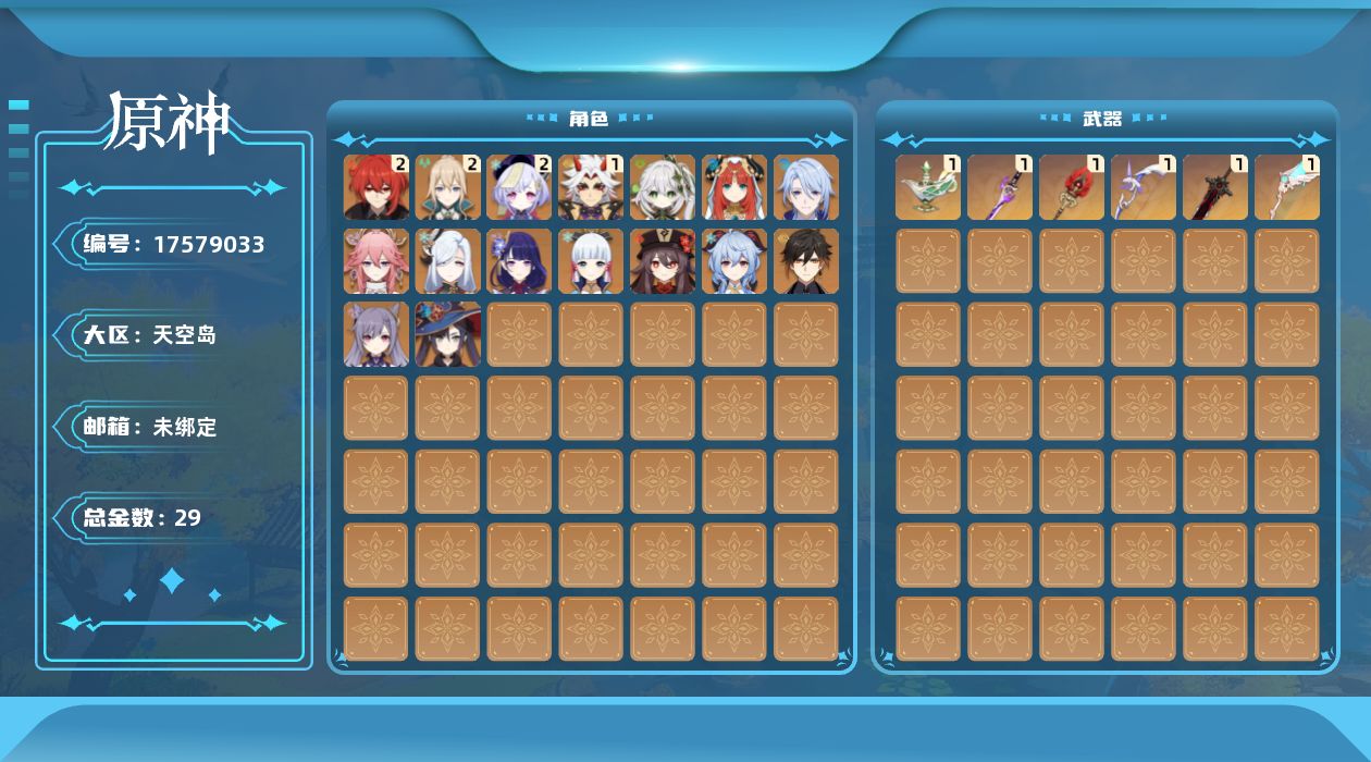 [17579033]57级/29黄/女主/16个五星角色/6个五星武器