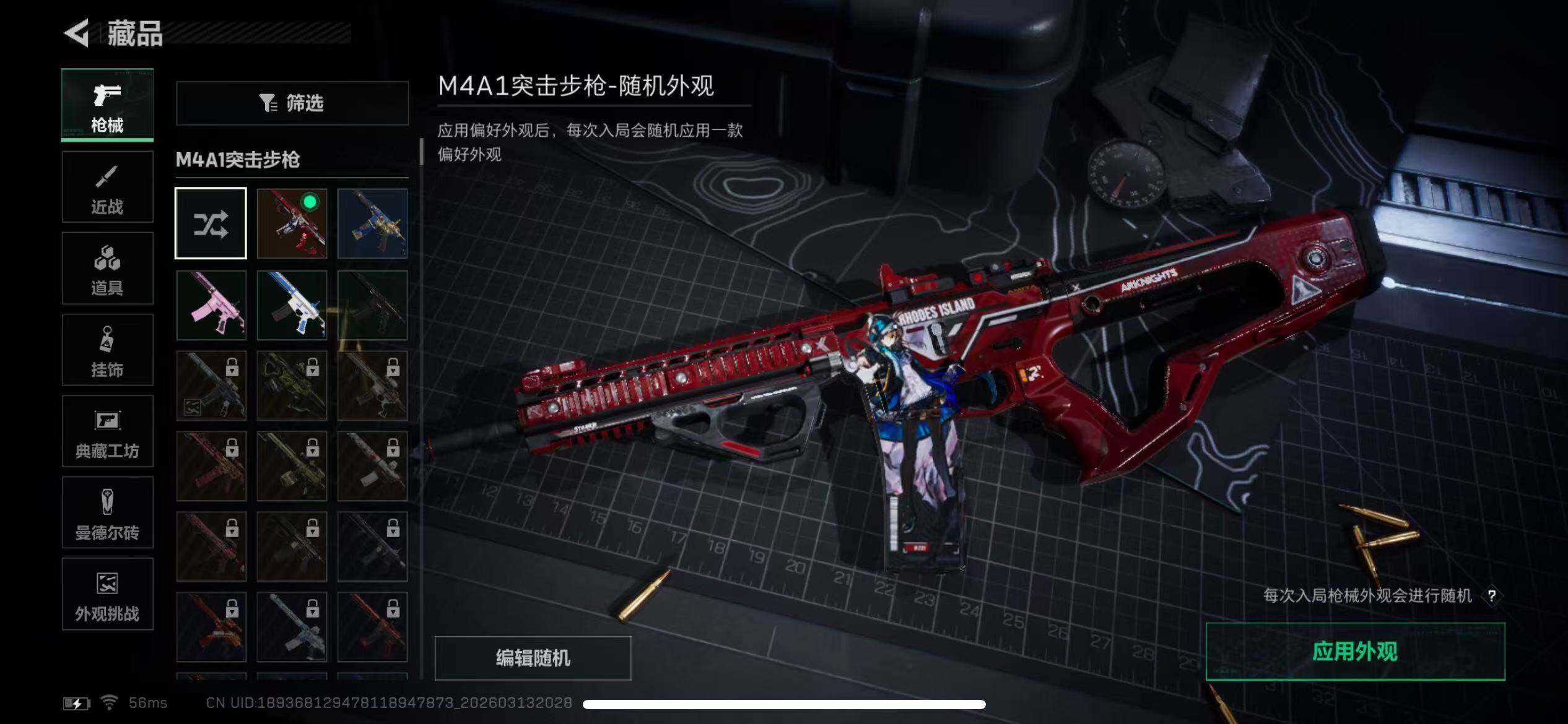 【稀有外观】:M4A1突击步枪-繁盛,QBZ95-1突击步枪-公平竞技,ASh-12战斗步枪-繁盛,K416突击步枪-一帆风顺,M7战斗步枪-捣蛋鬼,SG552突击步枪-2026, AK-12突击步枪-马年新春,SCAR-H战斗步枪-荣耀列队,SCAR-H战斗步枪-开心时刻,G3战斗步枪-主宰,腾龙突击步枪-冰天雪地,MP5冲锋枪-虎啸,P90冲锋枪-黄昏,Vector冲锋枪-先锋,UZI冲锋枪-前沿科技,UZI冲锋枪-亚特兰蒂斯,野牛冲锋枪-前沿科技,SMG-45冲锋枪-行动开启,勇士冲锋枪-主宰,QCQ171冲锋枪-银鹭,M1014霰弹枪-幻影结构,M249轻机枪-毛鲁斯之力,M249轻机枪-冰天雪地,Mini-14射手步枪-荣耀列队,SKS射手步枪-弄臣,SR-25射手步枪-开拓,PSG-1射手步枪-主宰,G18-前沿科技