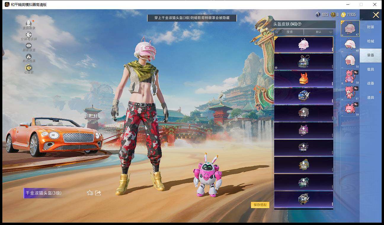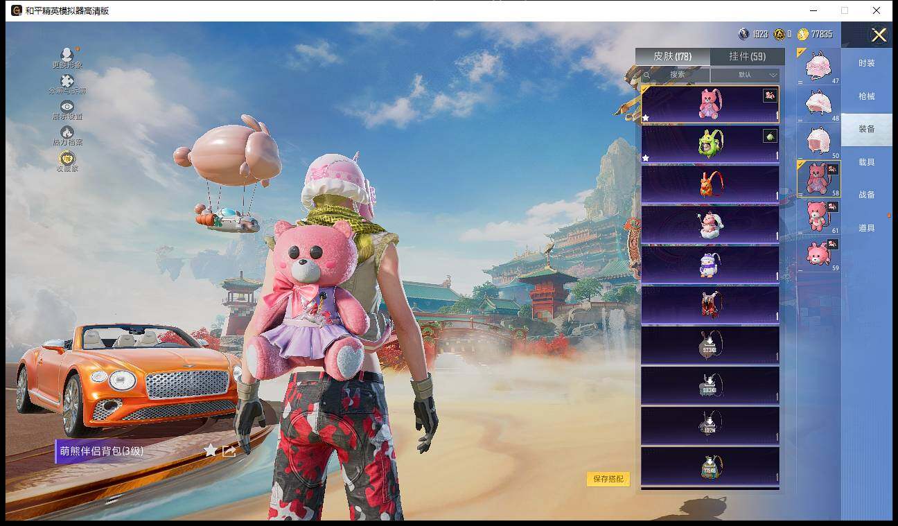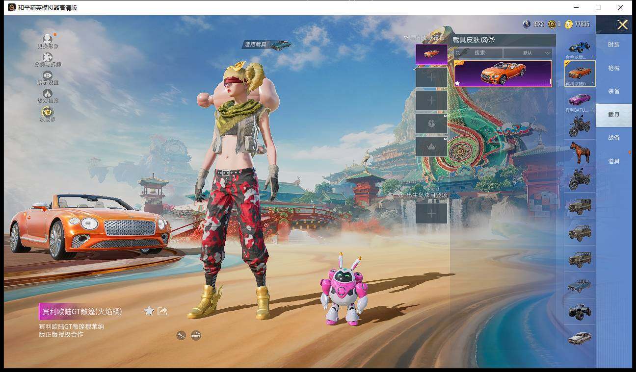 【粉色载具】:宾利欧陆GT敞篷(火焰橘),宾利BATUR(极速紫),合金龙骨(蓝),僚机-萌兔起飞