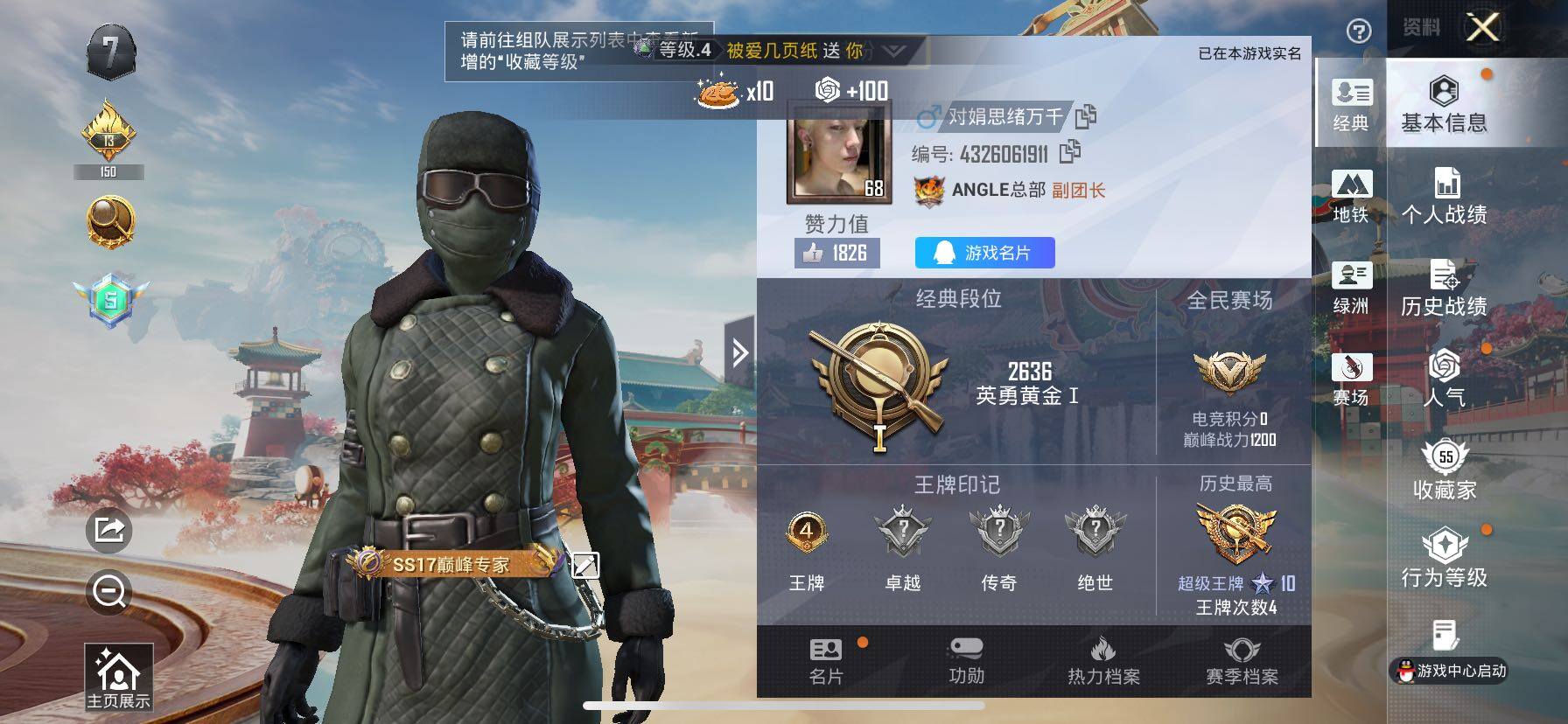 - PX_2077582- 苹果手Q-1王牌印记-2粉装-6特效枪-0载具-50632热力值-121套装-165枪皮-0卓越印记-0传奇印记 【2粉装】,圣堂之誓,海螺星光 【6特效枪】AKM-炫紫旋律-5级 SCAR-L-纯梦嫁纱-5级 M416-五爪金龙-7级 Kar98K-巳巳如意-5级 Mk14-闲梦青缨-5级 DP-28-暗夜鎏金-4级 【2稀有紫装】,龟仙人,怀庆长公主, 【121稀有时