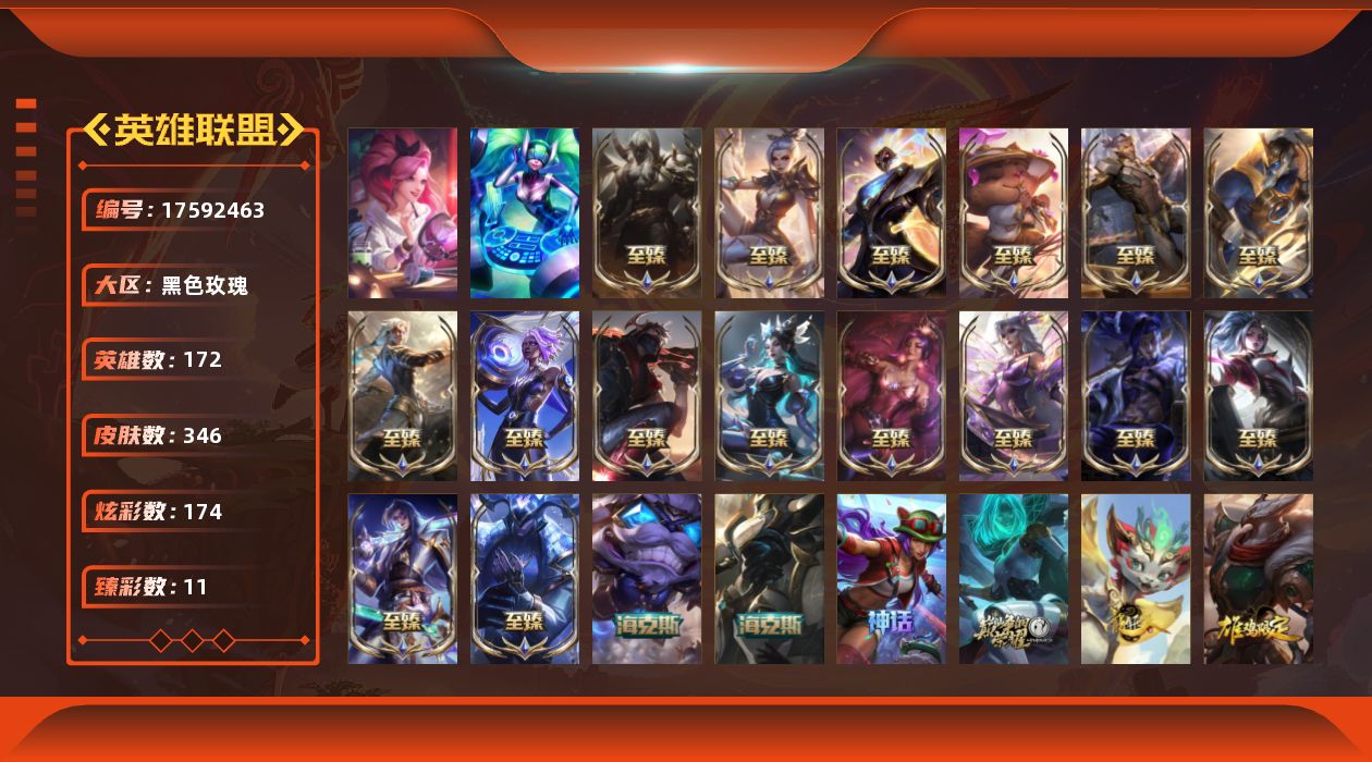 [17592463]【特价出售/店主推荐】未定级段位-172英雄-346皮肤-174炫彩-4终极-20神话-39限定-36传说-62史诗