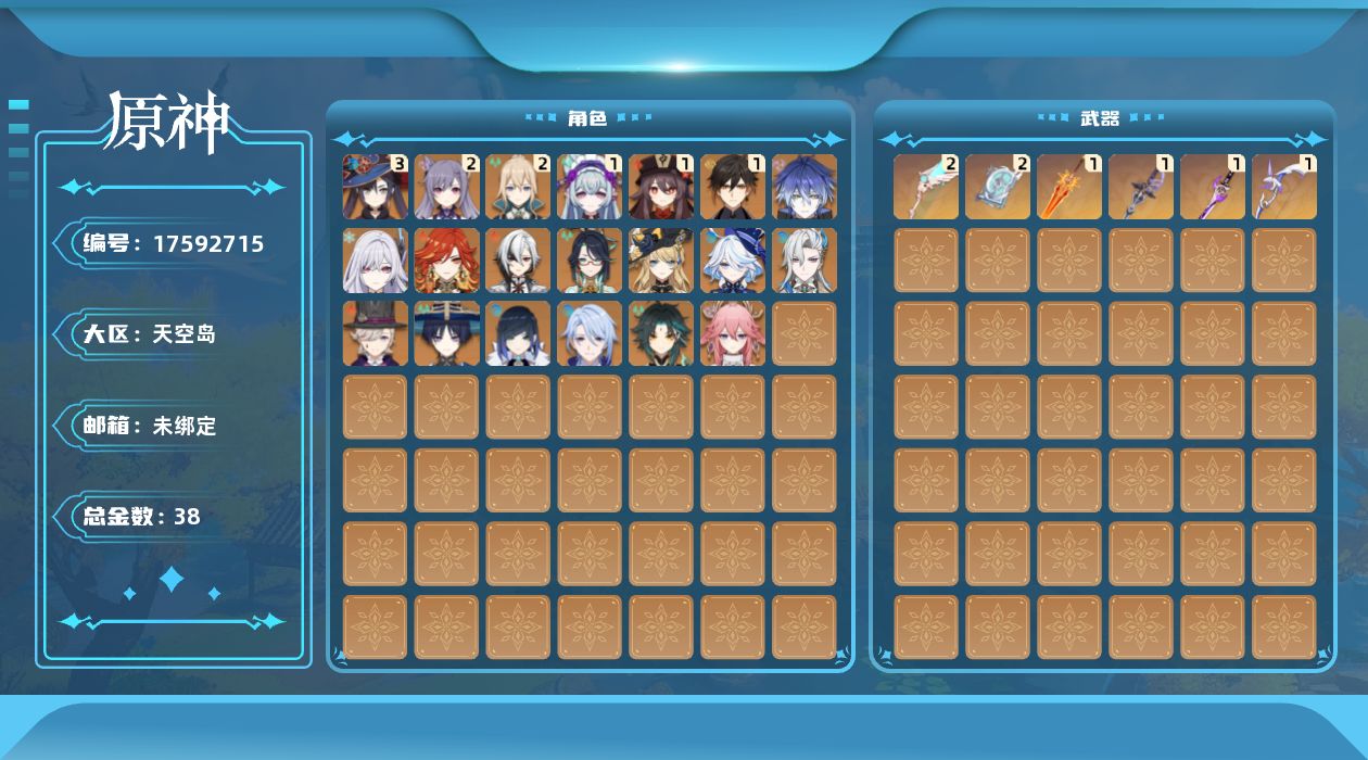 [17592715]59级/38黄/男主/20个五星角色/6个五星武器