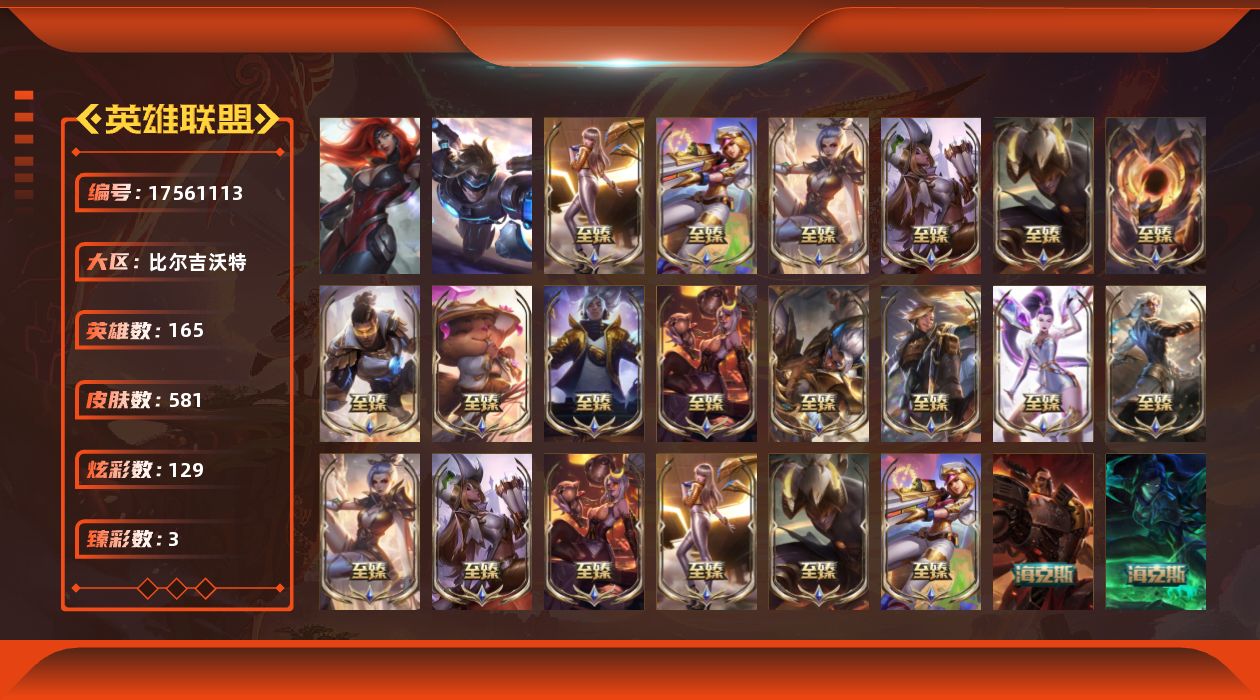 [17561113]【店主推荐捡漏号】未定级段位-165英雄-581皮肤-129炫彩-2终极-27神话-108限定-61传说-148史诗