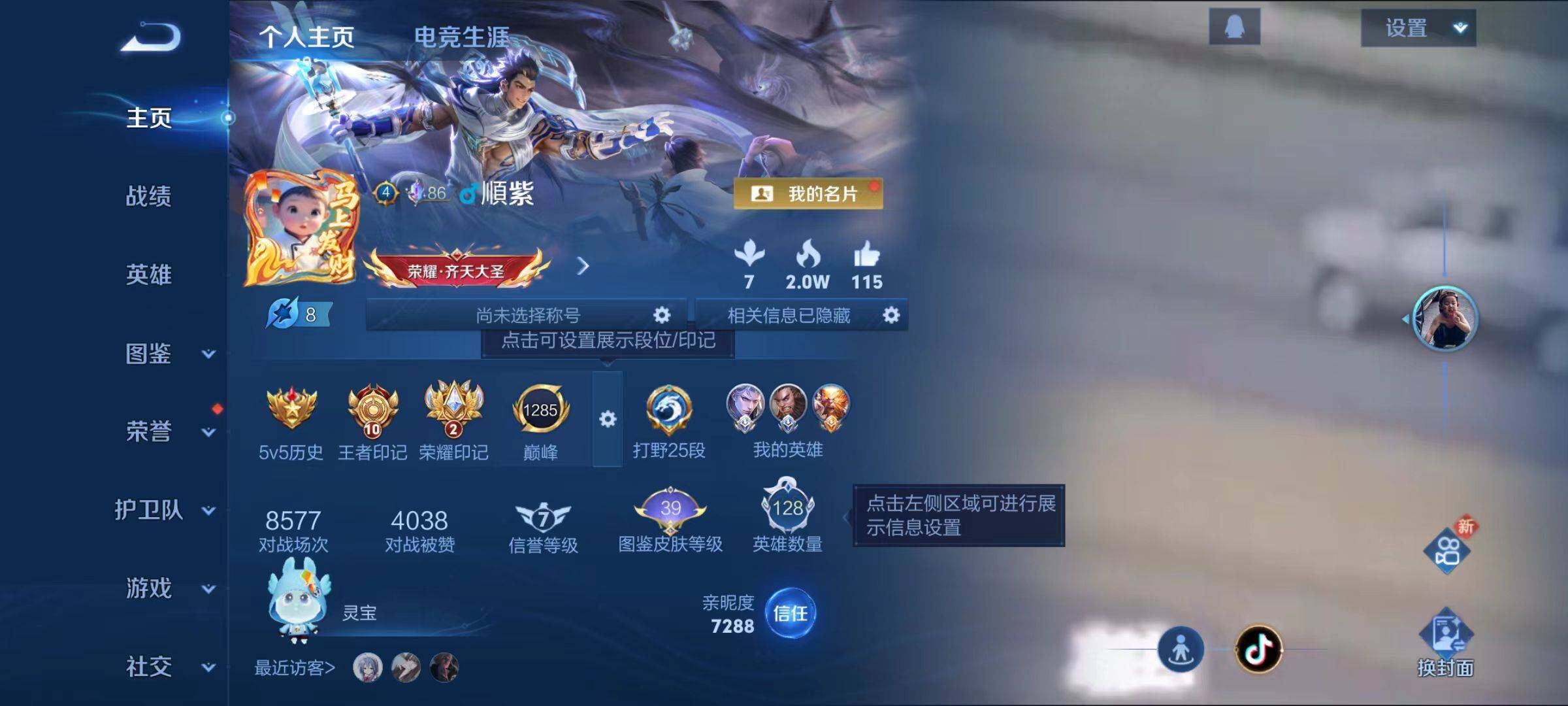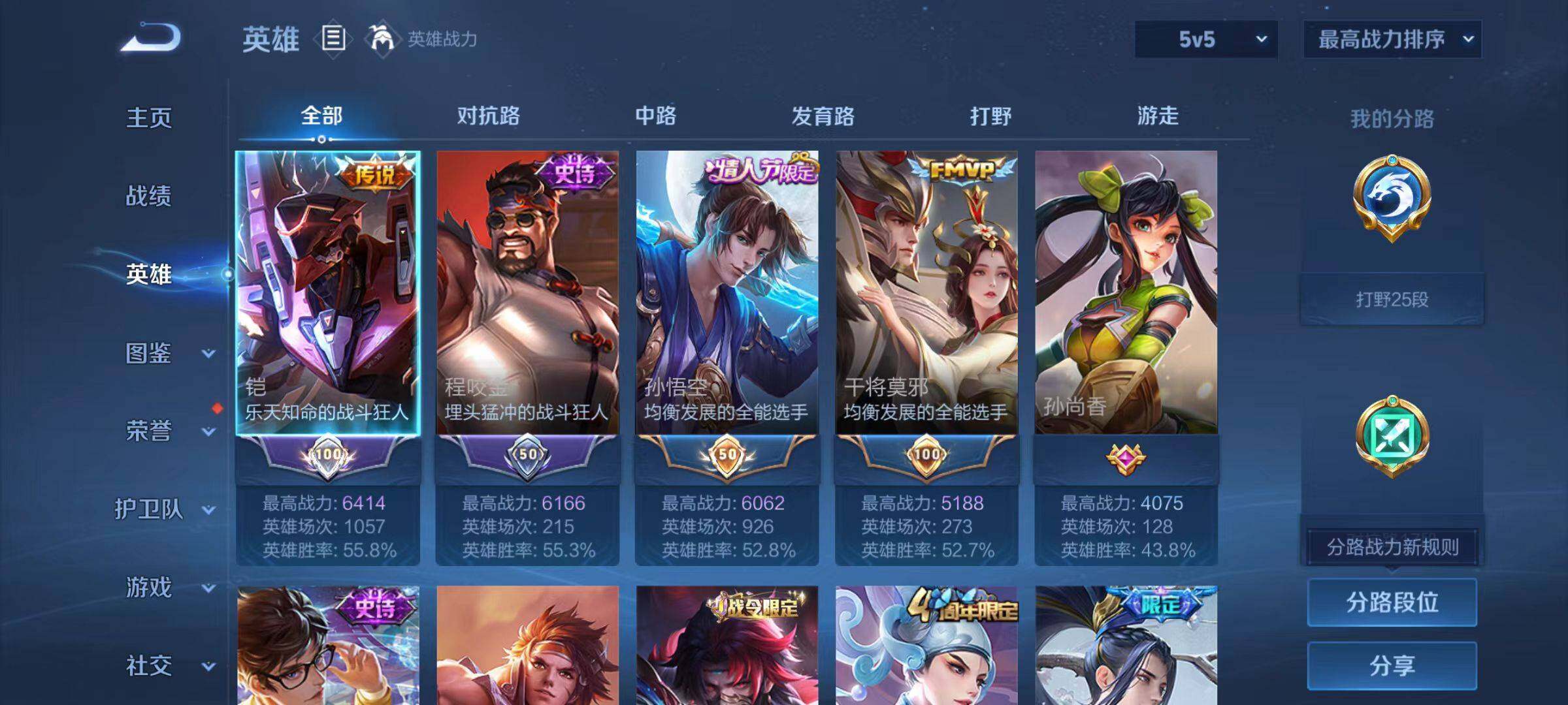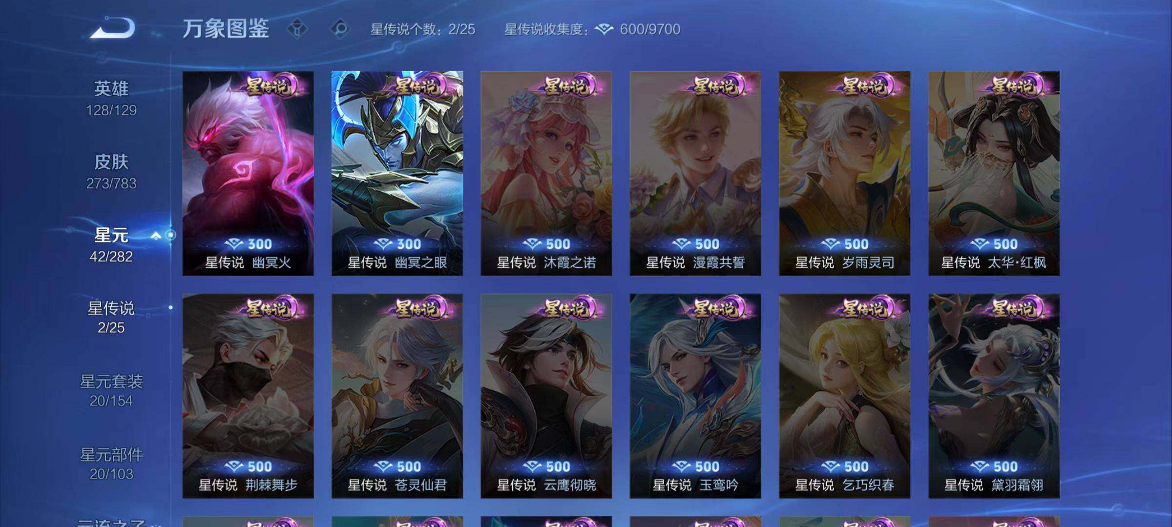 - [12140900]V8 2典藏 1珍品传说 9传说 125英雄 285皮肤 可修改实名 优质装备:杀手不太冷,神鉴启示录,云鹰飞将(小将军),云霓雀翎,地狱火,炽翼辉光(娃娃菜牛角包),记忆之芯(机甲兔),涂山容容 珍品传说:兔狲·蓬尾 珍宝阁皮:妄想食味,女武神 限定皮:鸣野蒿,太华(伽罗年限),玄嵩(庄周年限),高山流水,降魔,青龙志(铠年限),梁祝,龙胆,天狼绘梦者,李小龙,如梦令-后羿,默契交锋-兰陵王,默契交锋-花木兰,一生所爱,大圣娶亲,神器·万象笔,山海·玄木吟(马可年限) 史诗皮:化蝶舞,星界战将,破空之剑,百相守梦-黄忠,遇见神鹿,紫霞仙子,白龙吟,黄金分割率,特工魅影,千年之狐,永昼,蒙恬荣光圣徽,偶像歌手,白蛇,晚萤,龙骑士(小龙虾),末日机甲-吕布,猫狗日记-孙策,时之恋人-孙尚香,乱世虎臣,节奏热浪,修罗,女仆咖啡,水果甜心,绅士熊喵,天才门将,星夜王子,功夫厨神,德古拉伯爵,暗隐猎兽者,幽灵船长,鬼剑武藏,暗渊魔法,舞动绿茵,地狱岩魂,纤云弄巧,繁星吟游(呼啦呼啦),拒霜思,缤纷独角兽,乘风破浪,逐浪之夏,水晶猎龙者,曙光守护者,箭羽风息,金属风暴,原初追逐者,圣诞狂欢,圣诞恋歌,鹰眼统帅,魅力维加斯,黎明之约,赏金猎手,奇遇舞章,无心,未来纪元-赵云