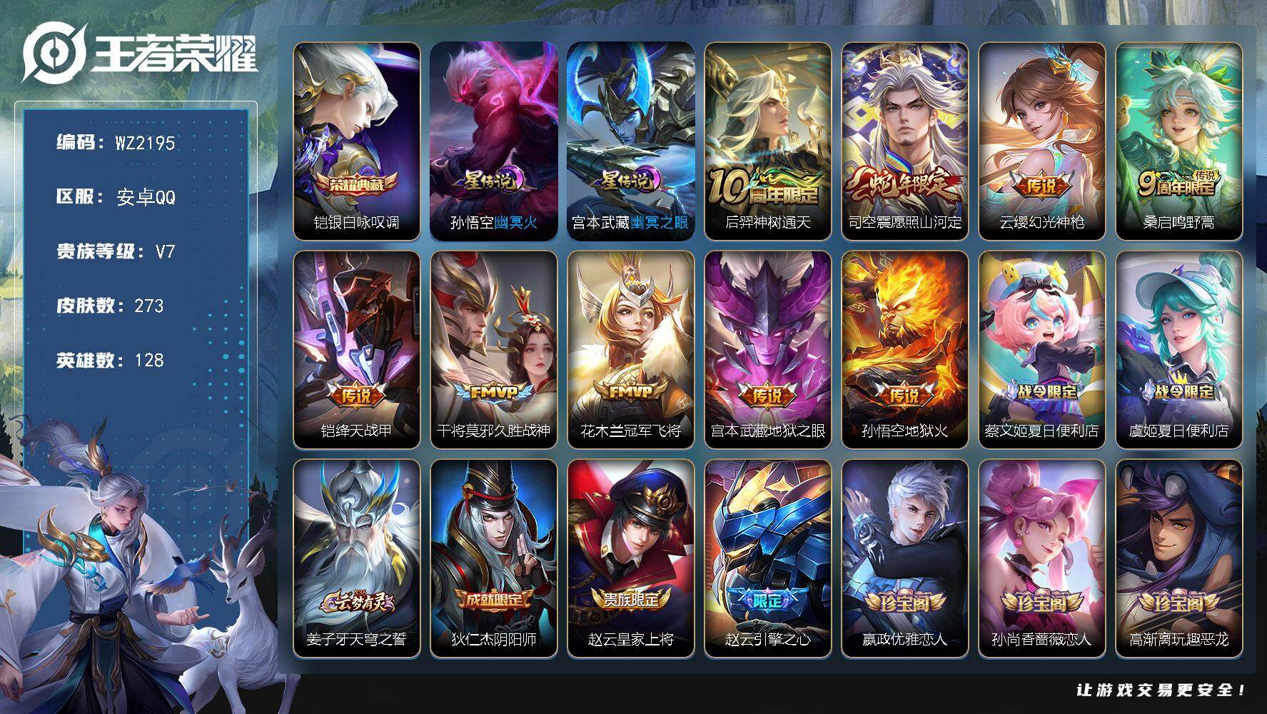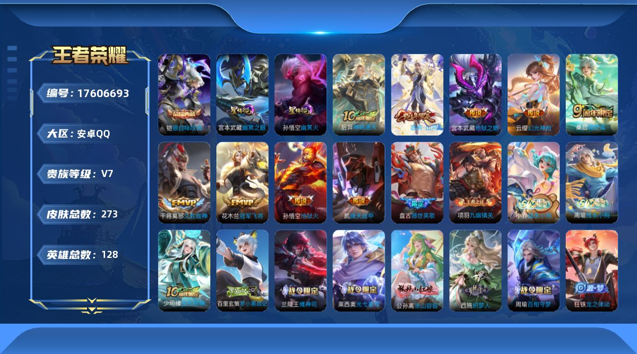 [17606693]安卓Q-273皮肤-1典藏皮肤-9传说-95史诗