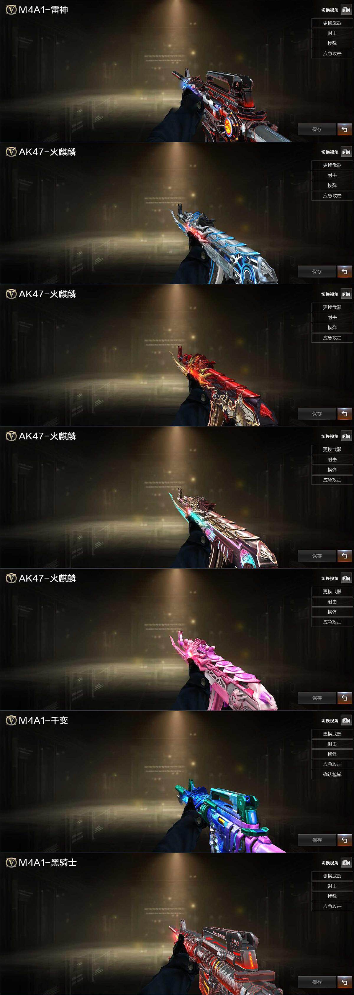 【皮肤】:雷神-暗月,火麒麟-雷神,火麒麟-平天大圣,火麒麟-百城,火麒麟-心动糖果,M4A1-千变-孔明皮肤,黑骑士-暗月