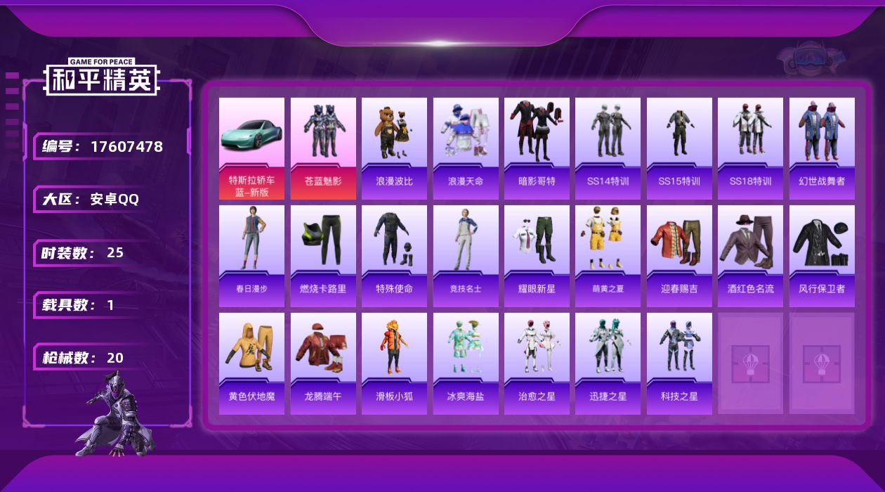 [17607478]安卓 手Q-1粉装-0特效枪-1载具-0粉色飞行器-7998热力值-1王牌印记-25套装-20枪皮